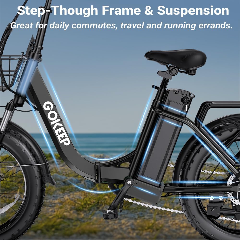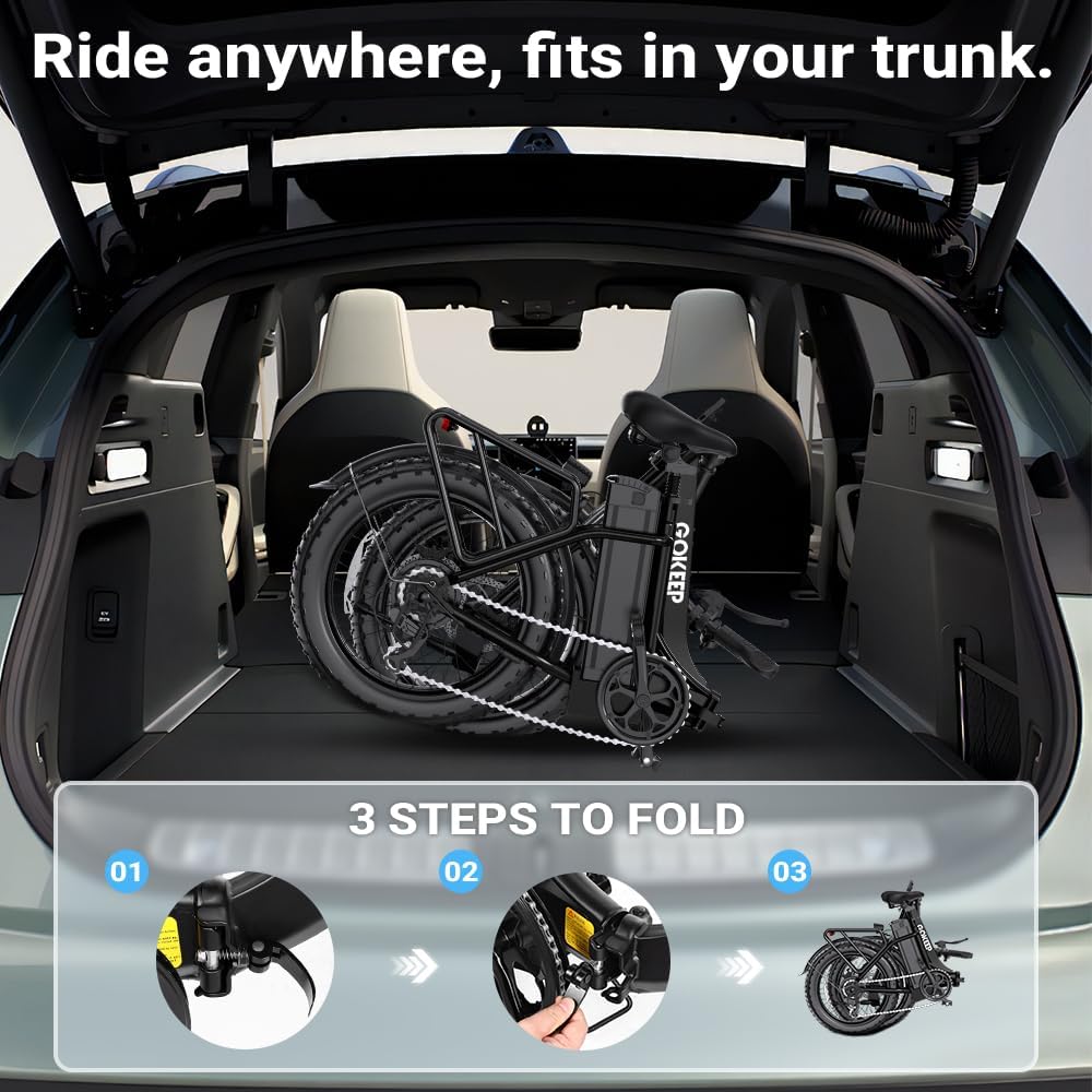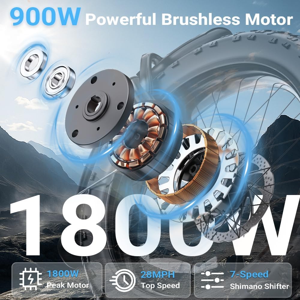 The 1300W/1800W Folding Electric Bike is designed for both adventure and daily commuting. With a powerful motor, it can tackle steep inclines and reach speeds of up to 20MPH. The bike features a removable 52V battery that provides a range of 75-86 miles, ensuring you have plenty of power for your journeys. Its 20" fat tires and front suspension offer a comfortable ride across various terrains, from city streets to off-road trails.