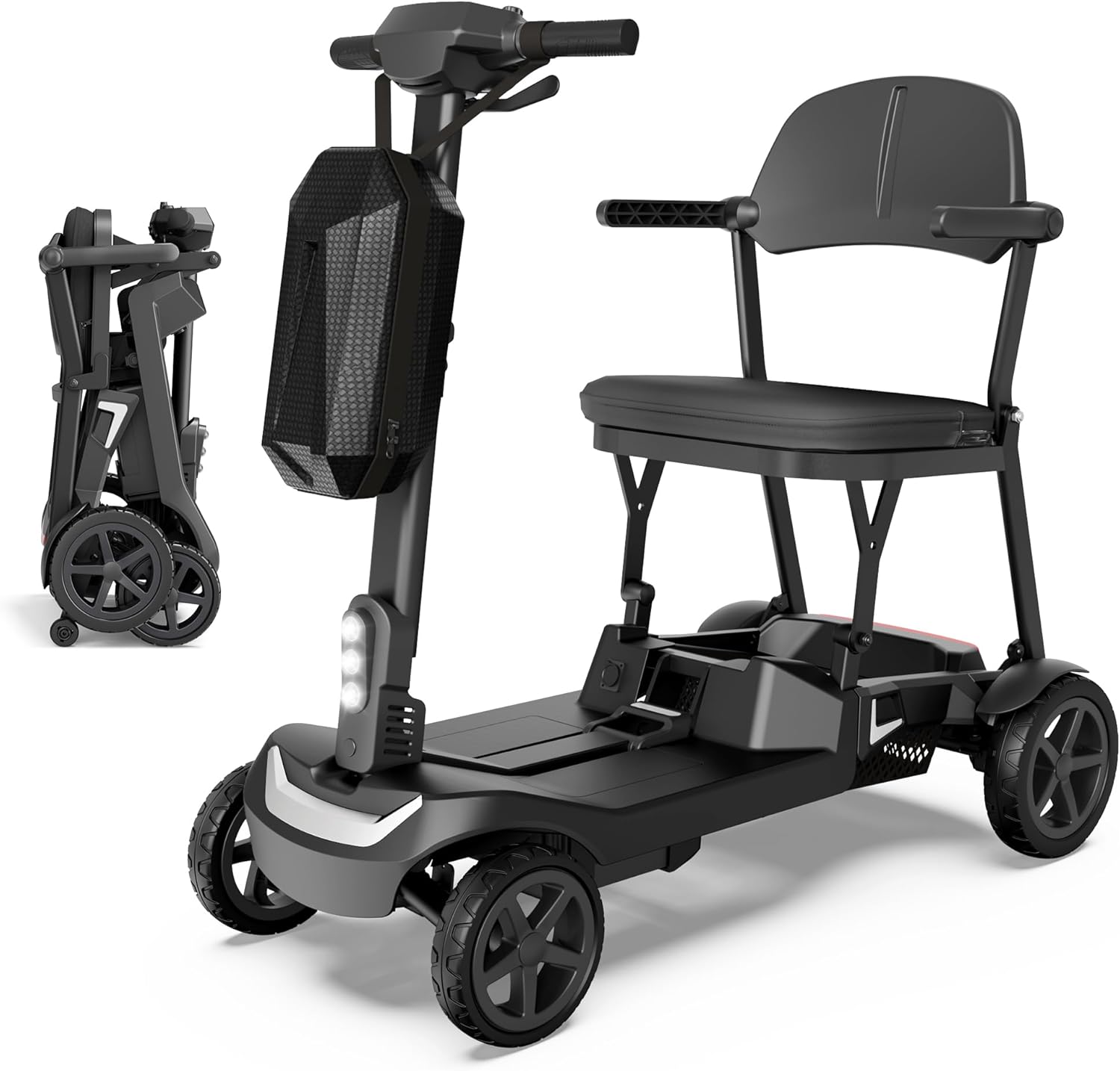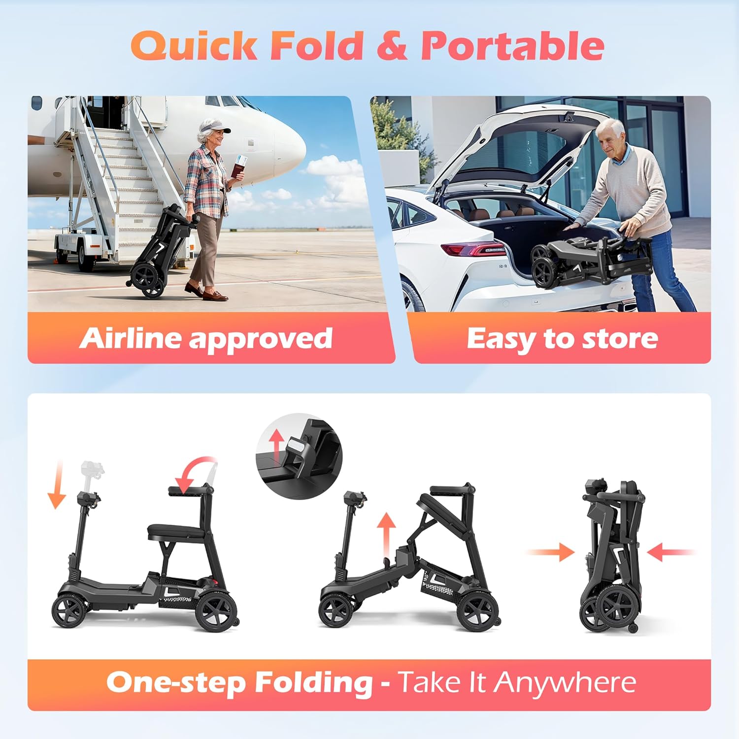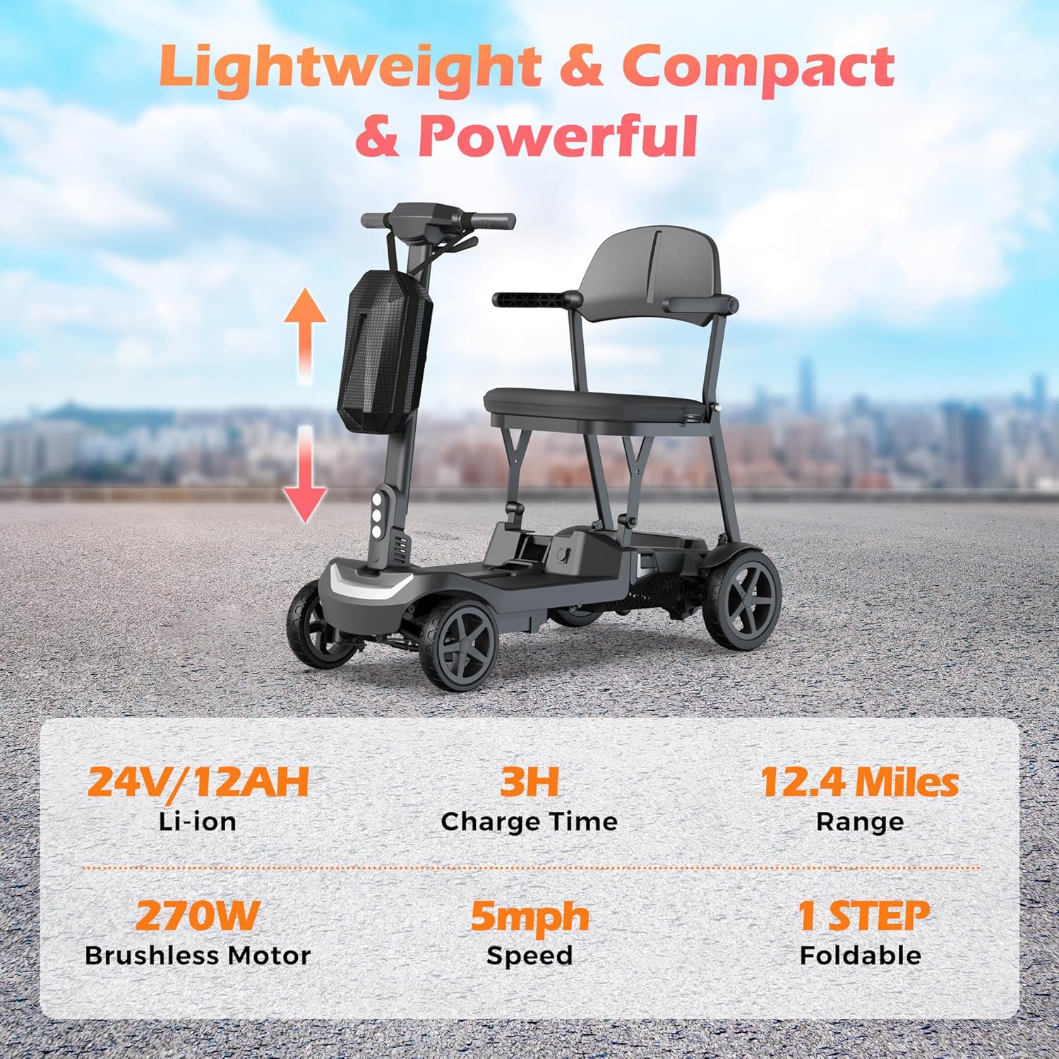 37.5lb Lightweight Mobility Scooter for Seniors & Adults – Cruise & Airline Approved, Removable Lithium Battery, Foldable Portable Travel Motorized Scooter, No Assembly Needed, 12.4Miles Range, Black