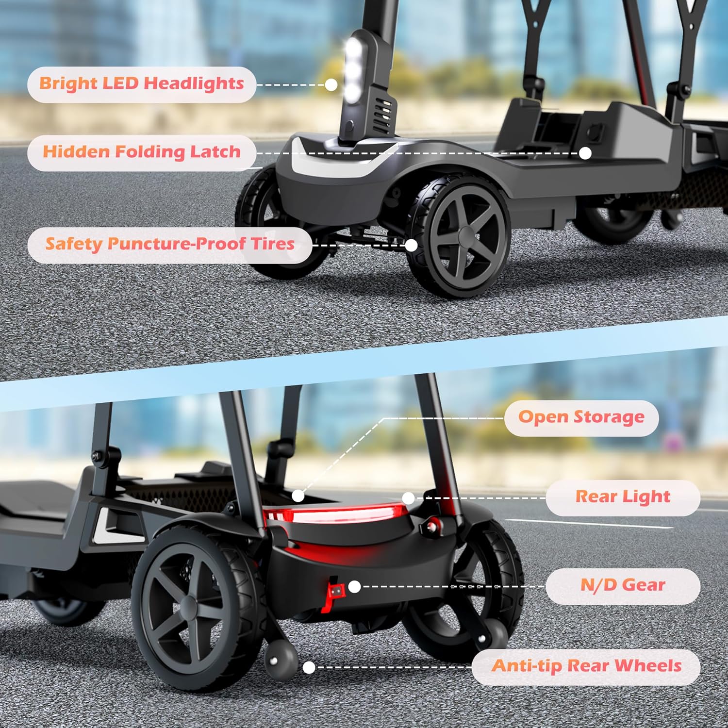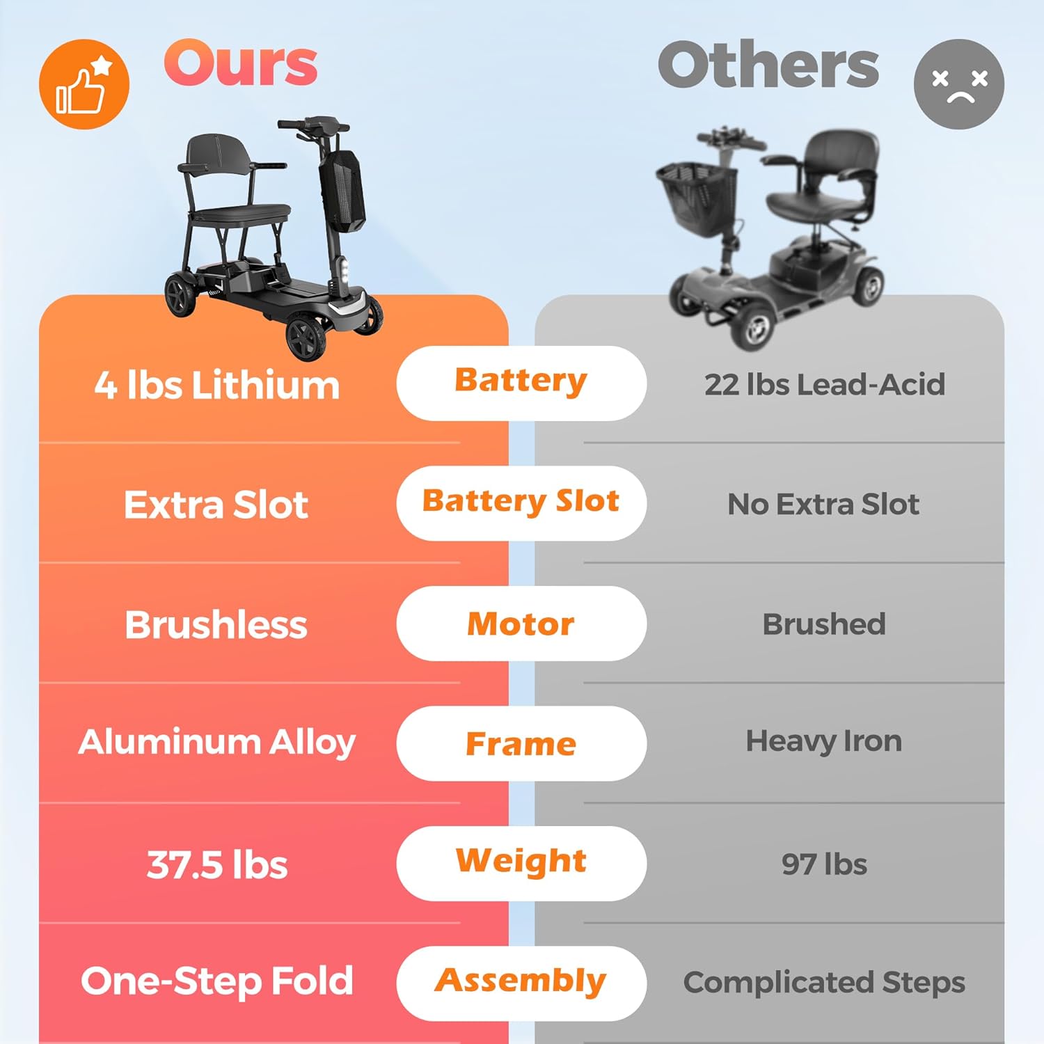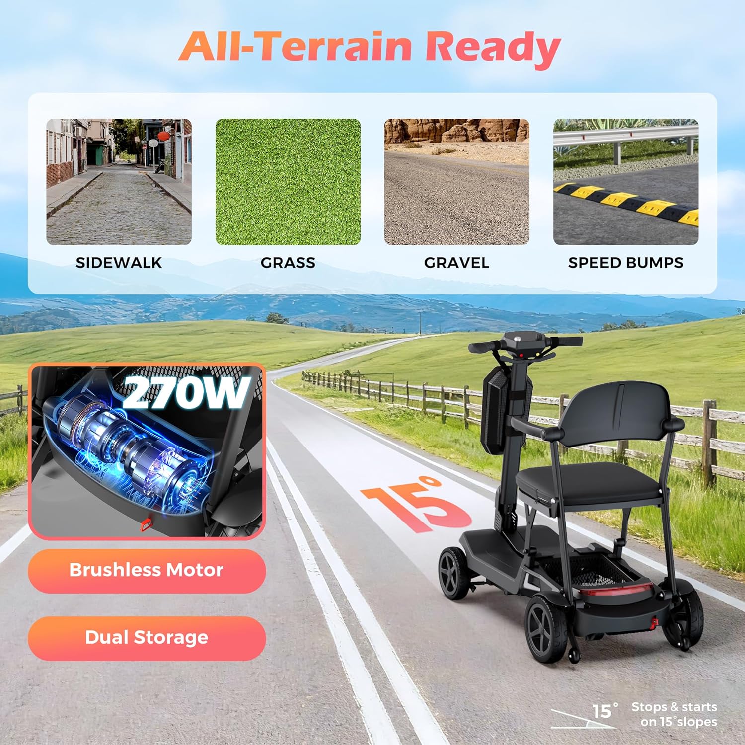 37.5lb Lightweight Mobility Scooter for Seniors & Adults – Cruise & Airline Approved, Removable Lithium Battery, Foldable Portable Travel Motorized Scooter, No Assembly Needed, 12.4Miles Range, Black