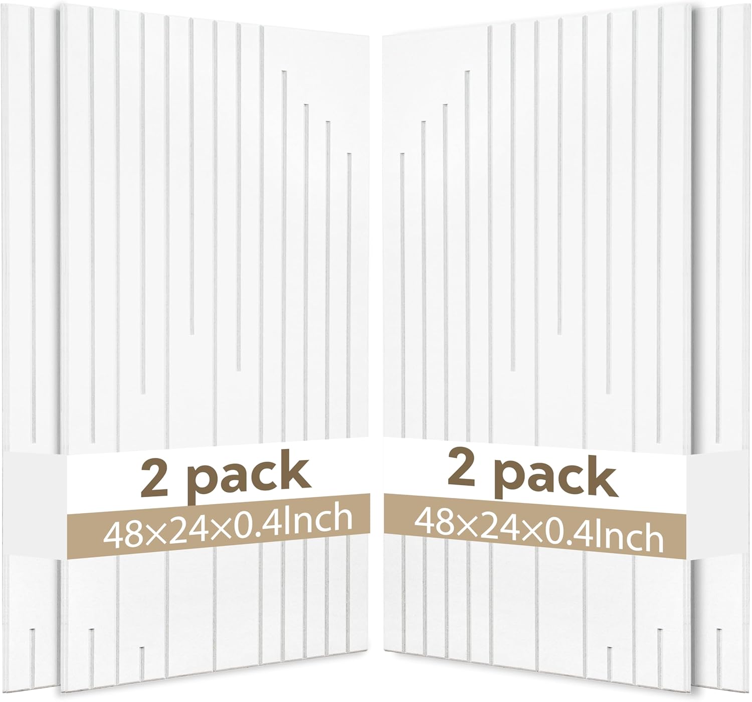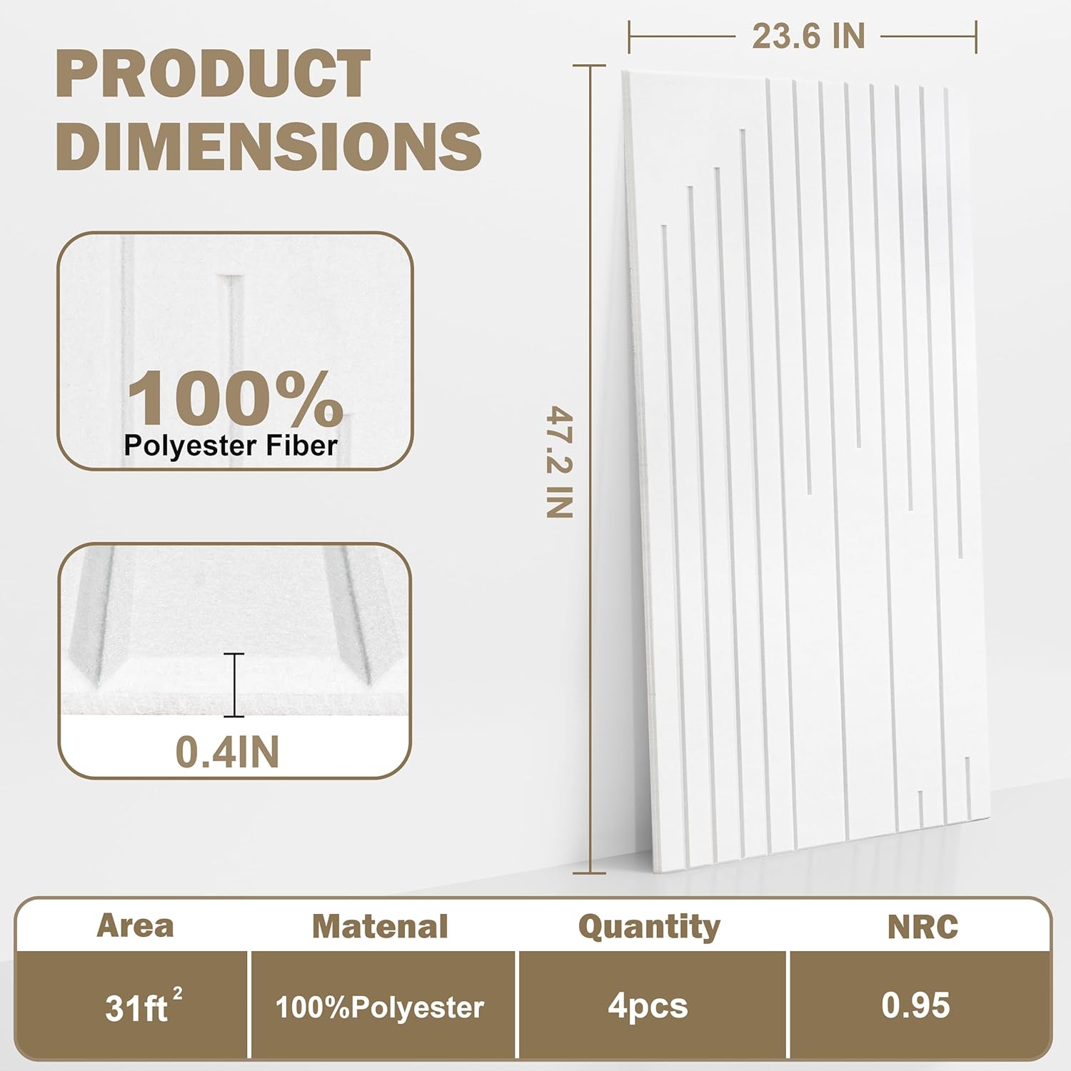 4-Pack Acoustic Panels with Self-Adhesive,47.2 x 23.6 x 0.35 Inch High Density Sound Proof Panels for Walls,Decorative Sound Dampening Panels for Home Studio & Office Decor, White