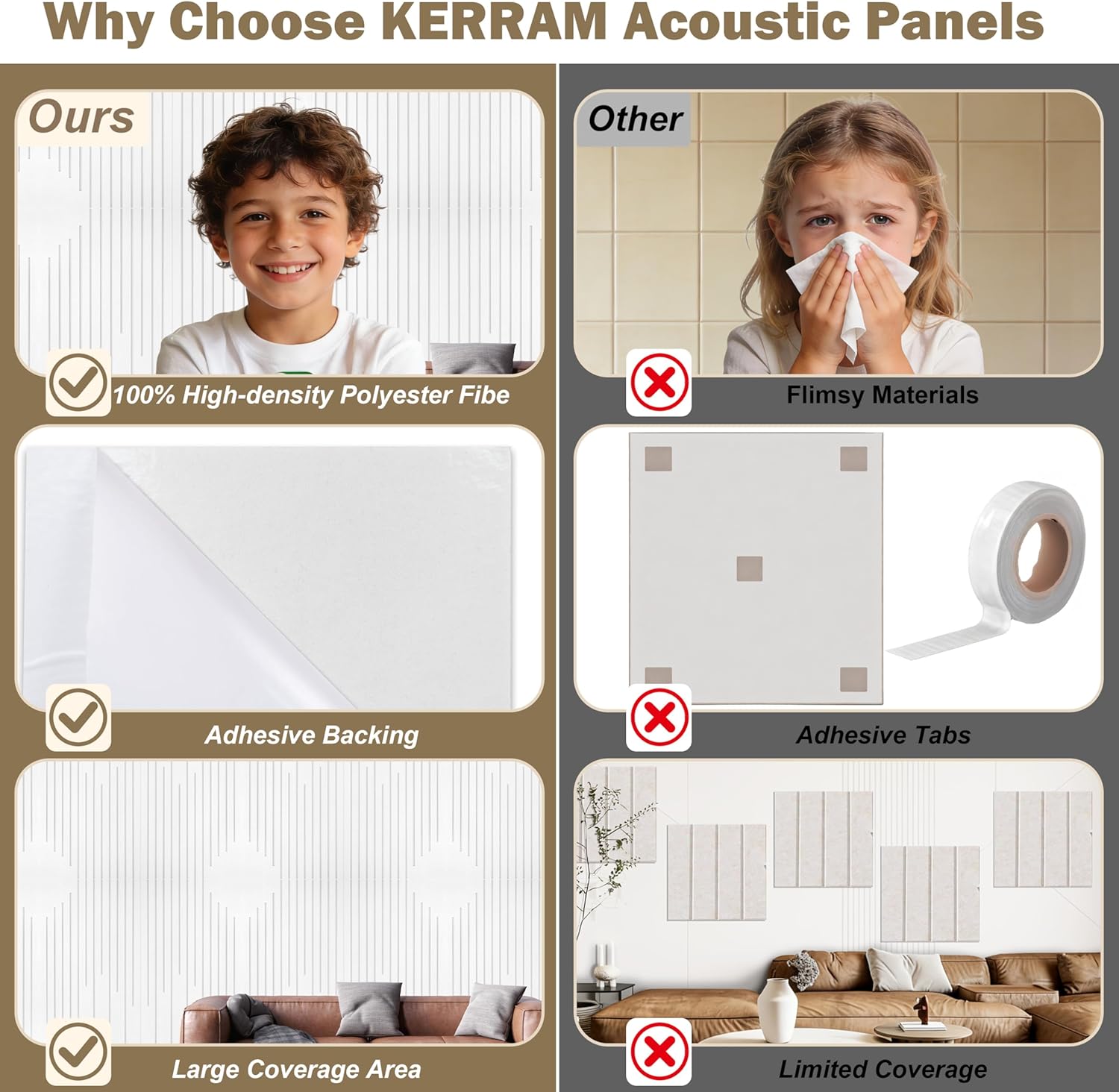KERRAM Acoustic Panels are designed to enhance the ambiance of any environment, making them ideal for homes, offices, and studios. These high-density soundproof panels not only reduce noise but also add a touch of sophistication to your decor. With their minimalist warm style, they seamlessly blend into various settings.