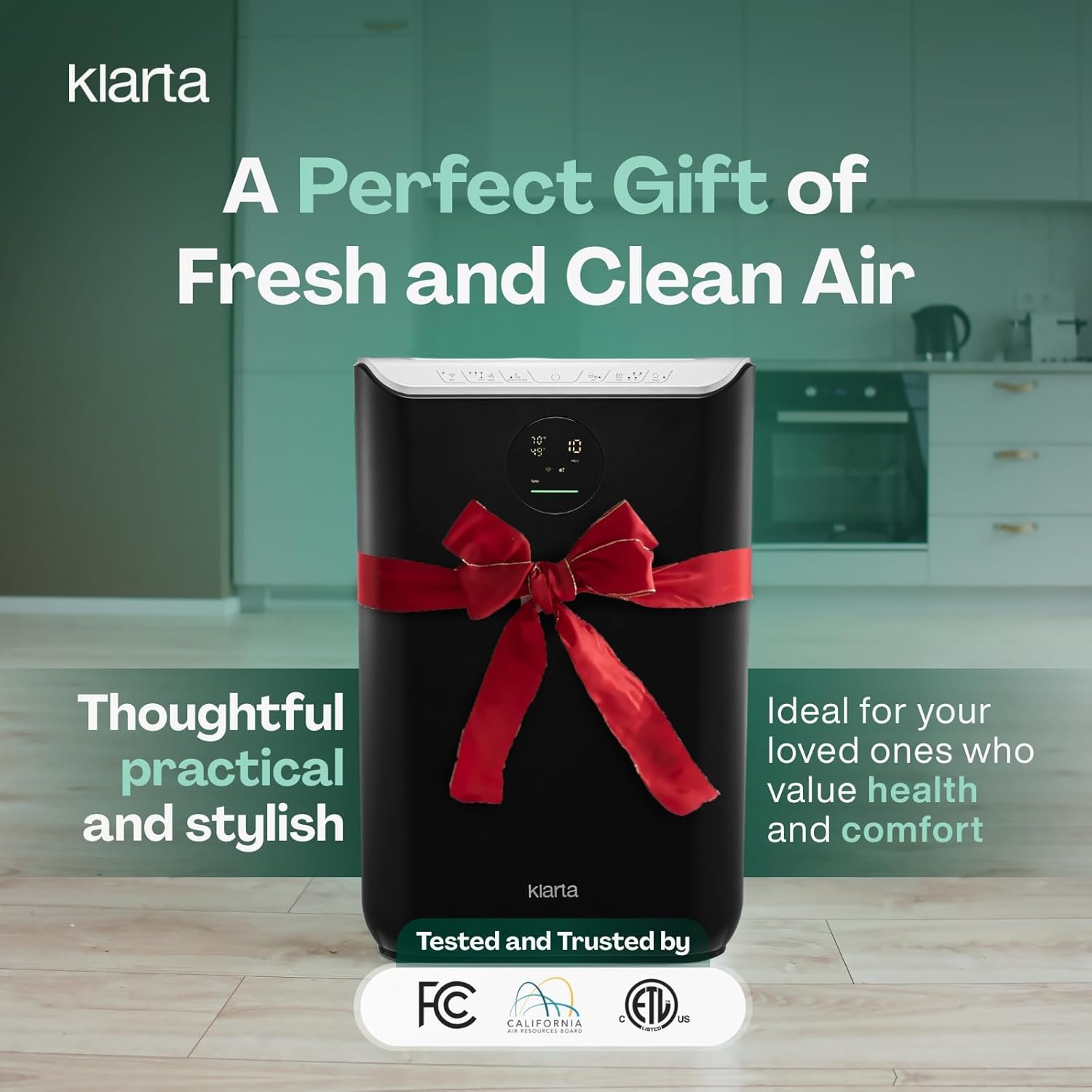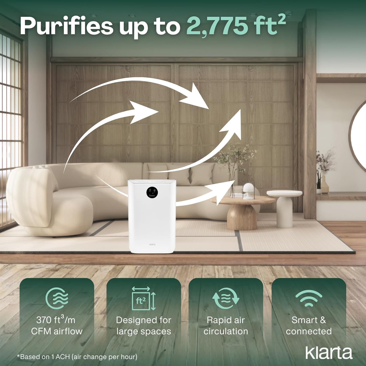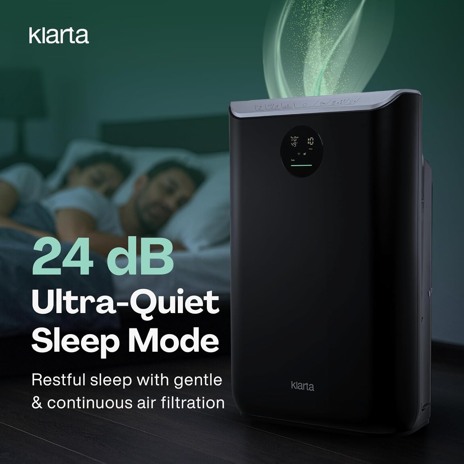Air Purifier for Large Room – Up to 2775 ft – Smart WiFi App – Ultra Quiet 24 dB – Air Purifiers for Home Pets – Removes Allergens, Smoke & Pet Odors – 99.97% Particle Filtration – Klarta Stor Black