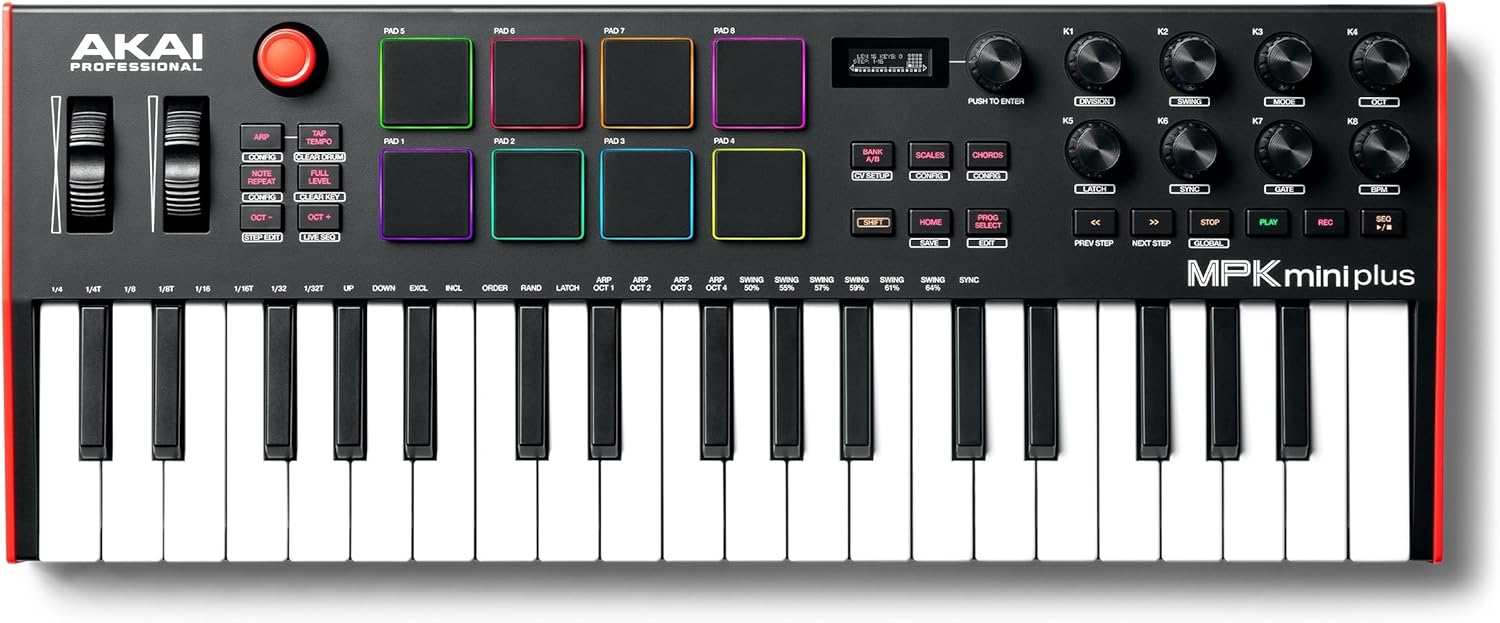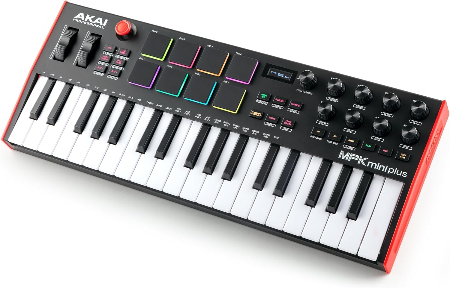 Akai Professional MPK Mini Plus – USB MIDI Keyboard Controller with 37 Mini Keys, 8 MPC Pads, Sequencer, MIDI/CV/Gate I/O, Music Production Software and Native Instruments Sound Package