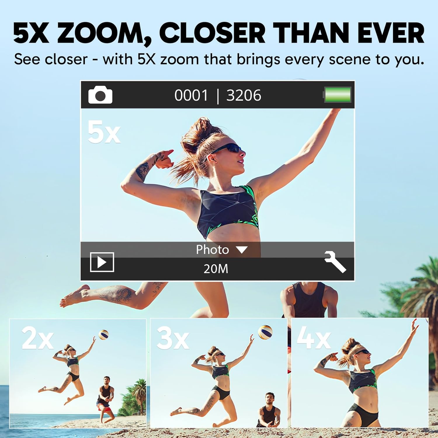 The AKASO EK7000 Pro is a versatile action camera designed for adventure enthusiasts. It captures stunning 4K video at 30fps and features a 20MP Ultra HD resolution, ensuring high-quality footage. This camera is waterproof up to 131 feet, making it perfect for underwater activities. With Electronic Image Stabilization (EIS), your videos will be smooth and shake-free, even during fast-paced action. The included 256GB MicroSDXC U3 card provides ample storage for your recordings.