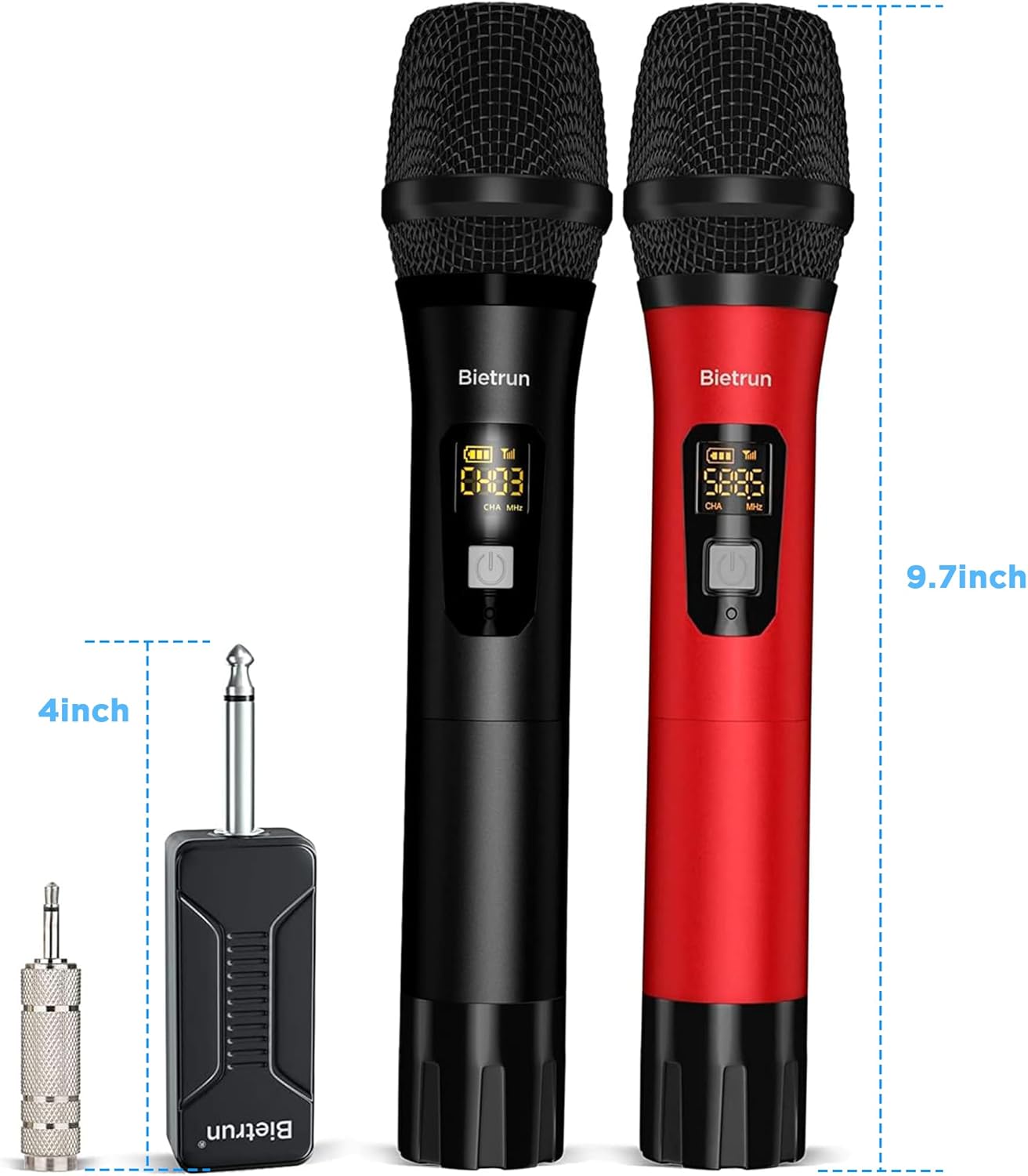 Bietrun Wireless Microphone Dynamic Mic System with Rechargeable Receiver, 1/4″ Output, for Karaoke, Church, Speech, Wedding, Party Singing(160 ft Range)-Auto Connect