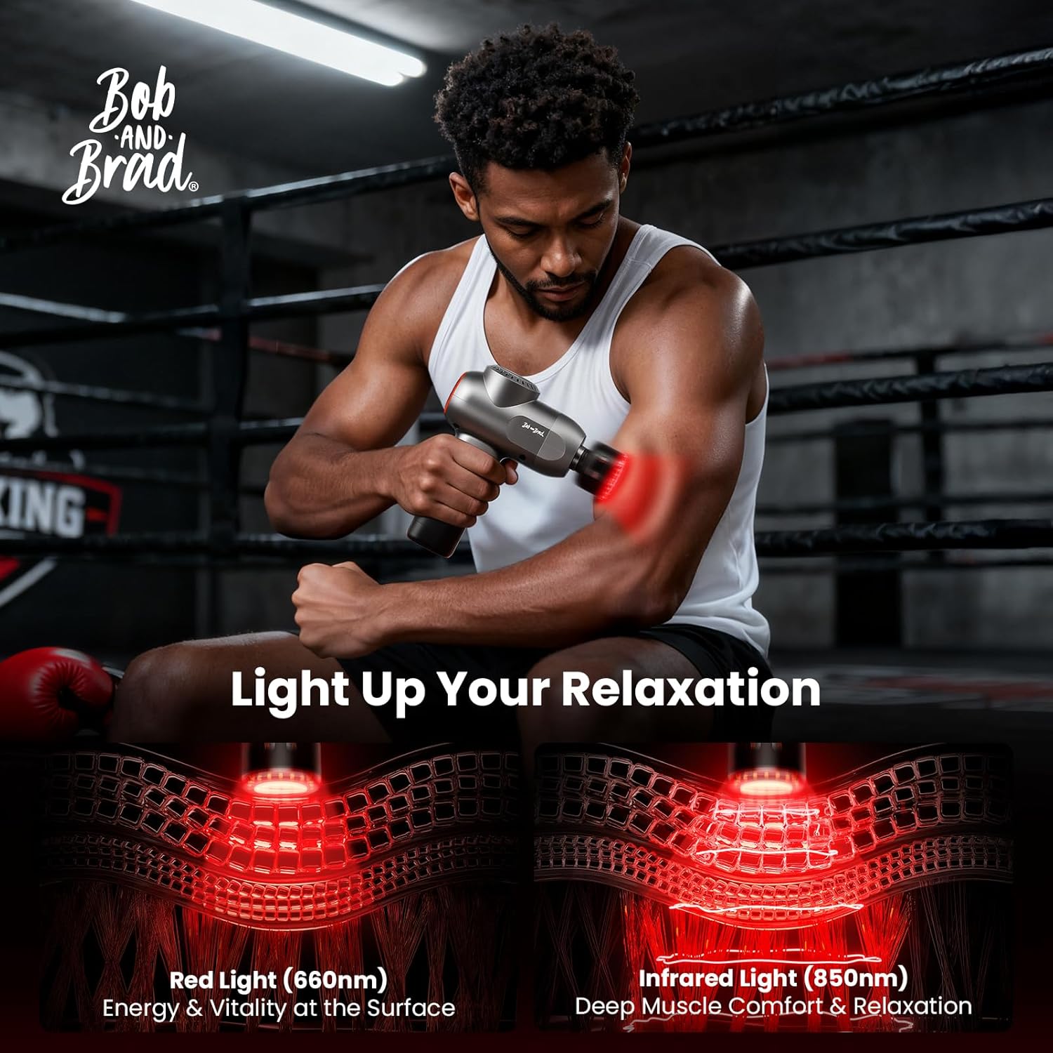 BOB AND BRAD C2 Ultra Massage Gun with Heat, Red LED & Infrared, FSA Eligible Deep Tissue Percussion Massager for Pain Relief, Electric Muscle Recovery for Athletes, HSA Approved