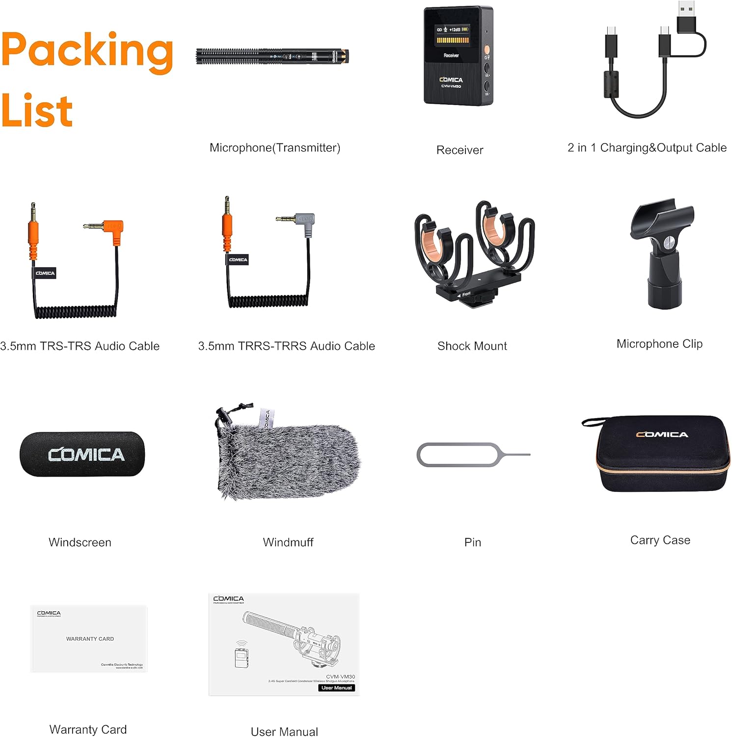 COMICA VM30 Shotgun Microphone with Wired & Wireless Modes, USB C Digital Output, 75/150Hz Low Cut, Super Cardioid Video Mic for Canon, Nikon, Sony DSLR Camera, Camcorder, Filming, Video Recording