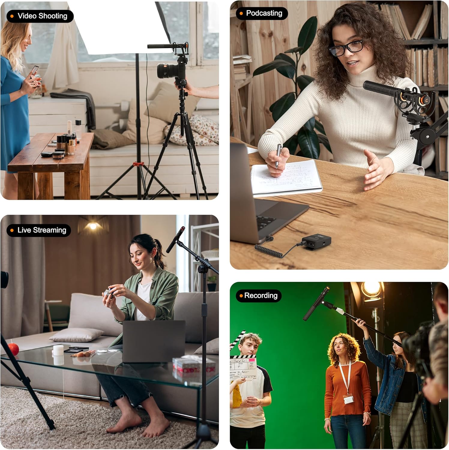 The COMICA VM30 Shotgun Microphone is designed for versatility in video recording. It features both wired and wireless modes, making it suitable for various filming scenarios. With a USB C digital output, it easily connects to modern devices. The microphone offers a low cut filter at 75/150Hz, which helps in reducing unwanted background noise, ensuring clear audio capture.