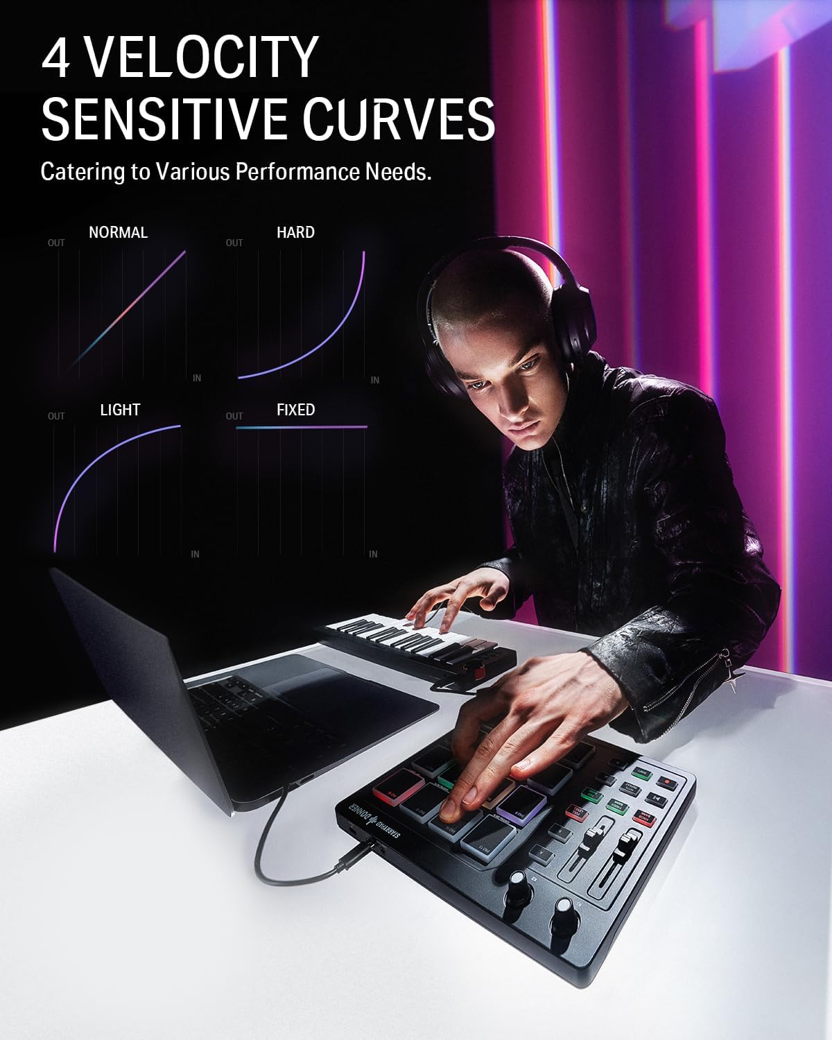 - 16 responsive beat pads for easy beat creation