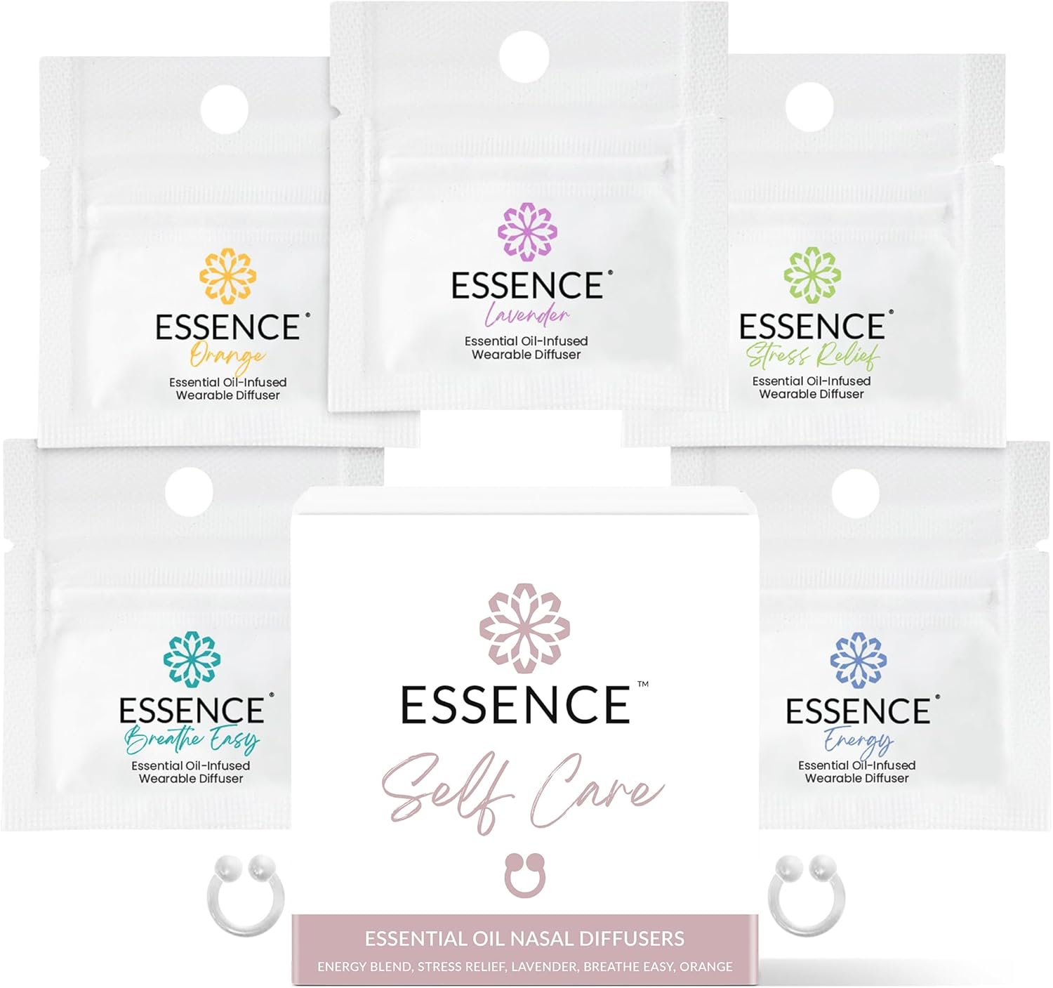 Essence Nasal Diffuser Self Care Bundle – Essential Oil Silicone Nose Rings for Stress, Energy & Mental Clarity – Wearable Aromatherapy Pack for Wellness & Mood Balance