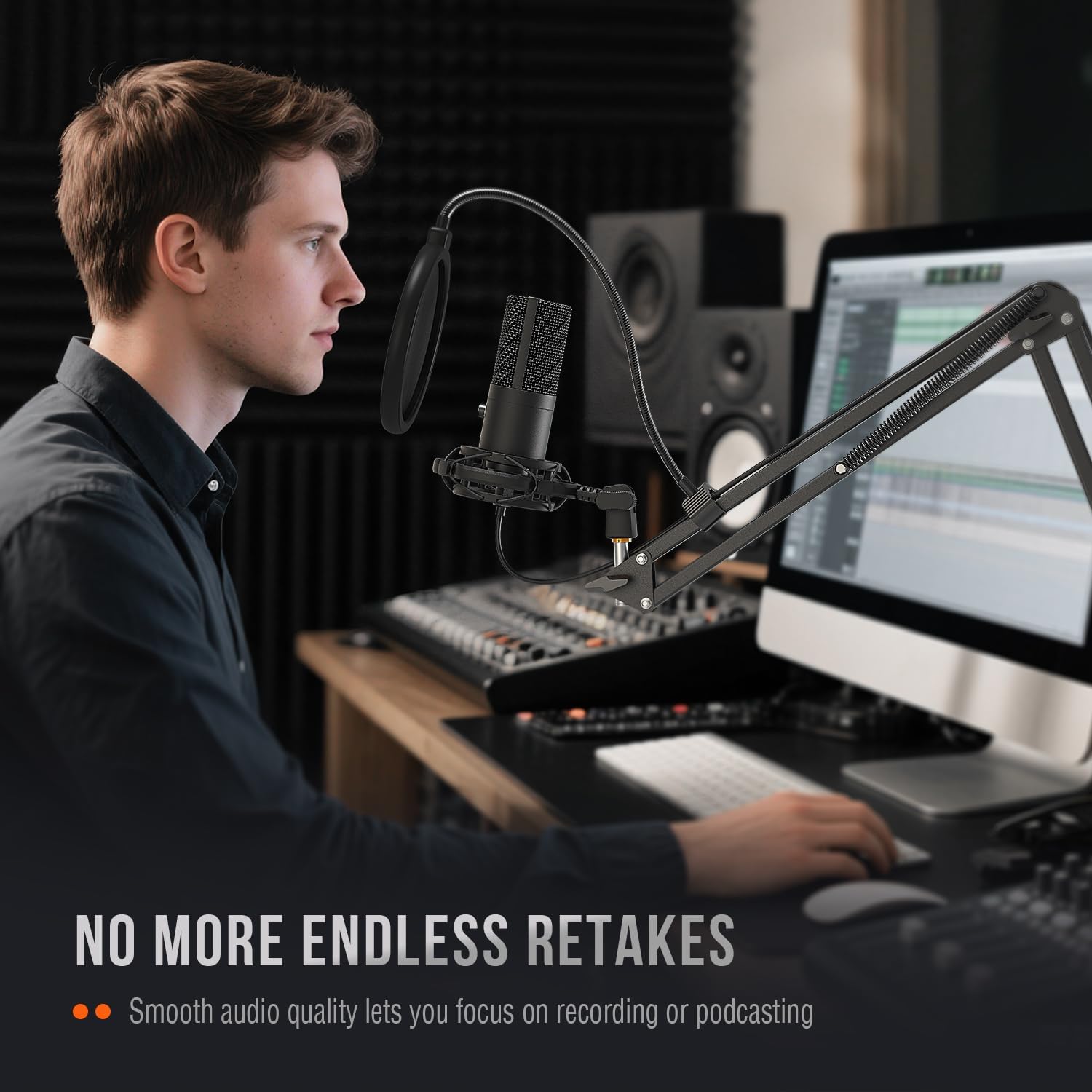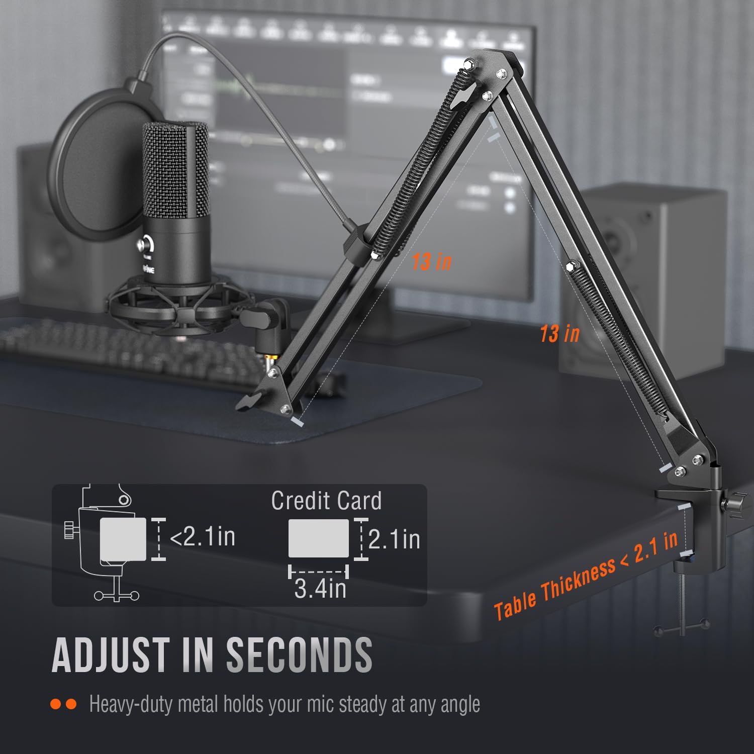 FIFINE Studio Condenser USB Microphone Computer PC Microphone Kit with Adjustable Boom Arm Stand Shock Mount for Instruments Voice Overs Recording Podcasting YouTube Vocal Gaming Streaming-T669