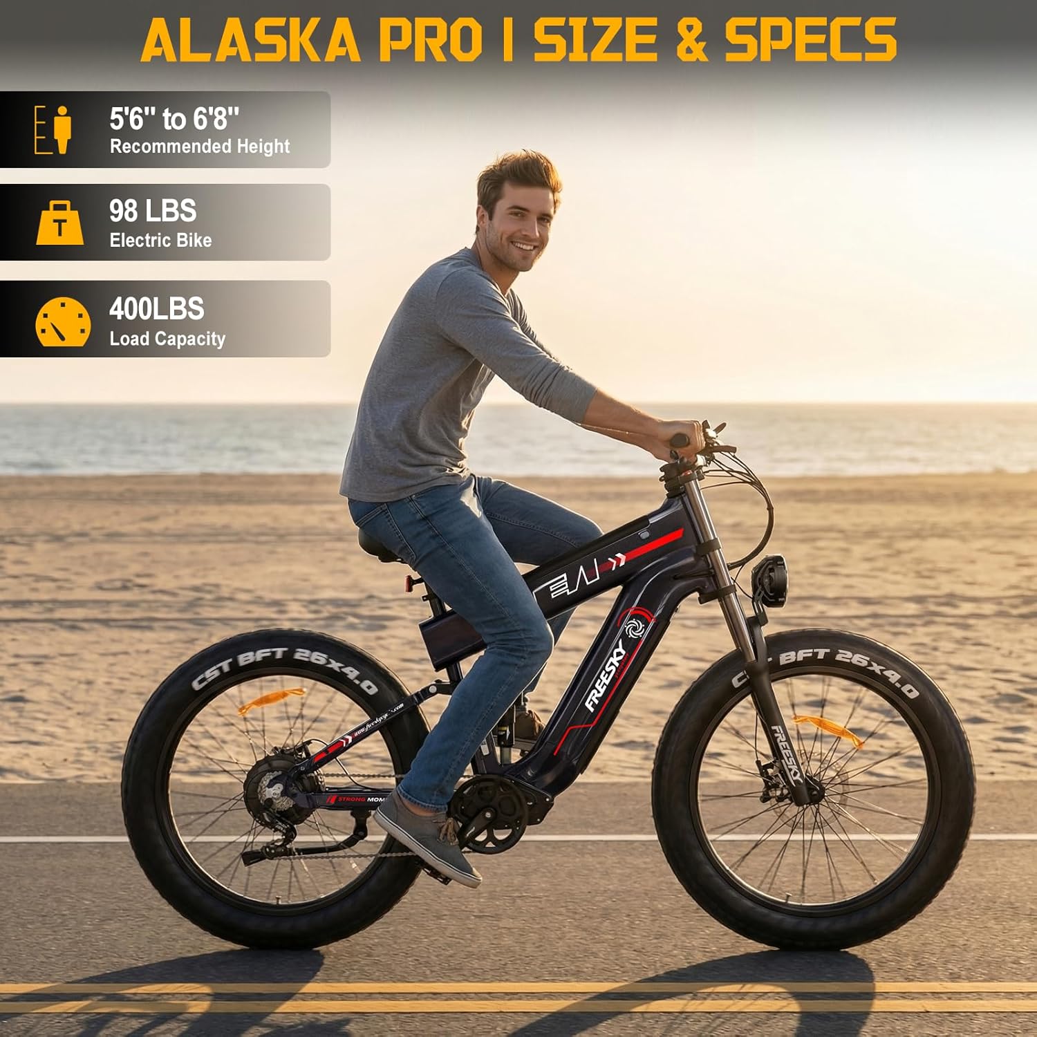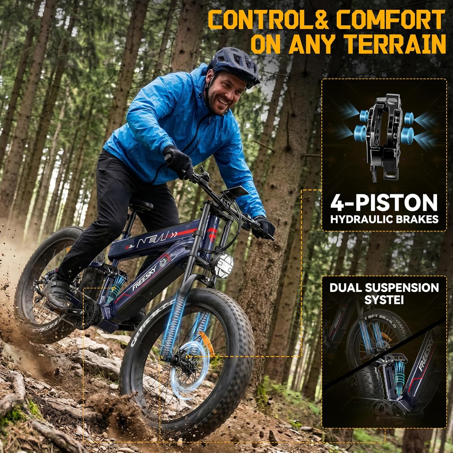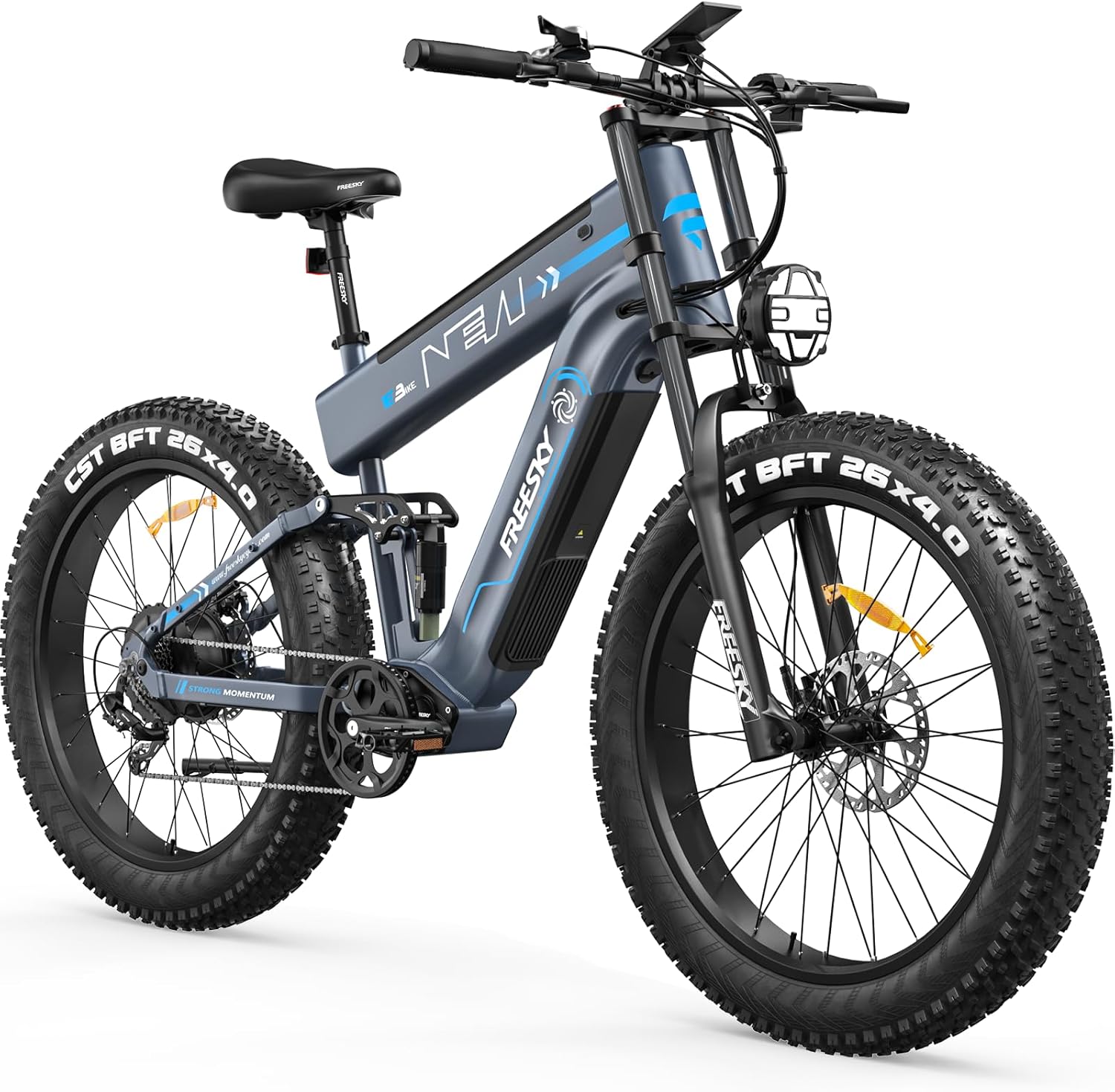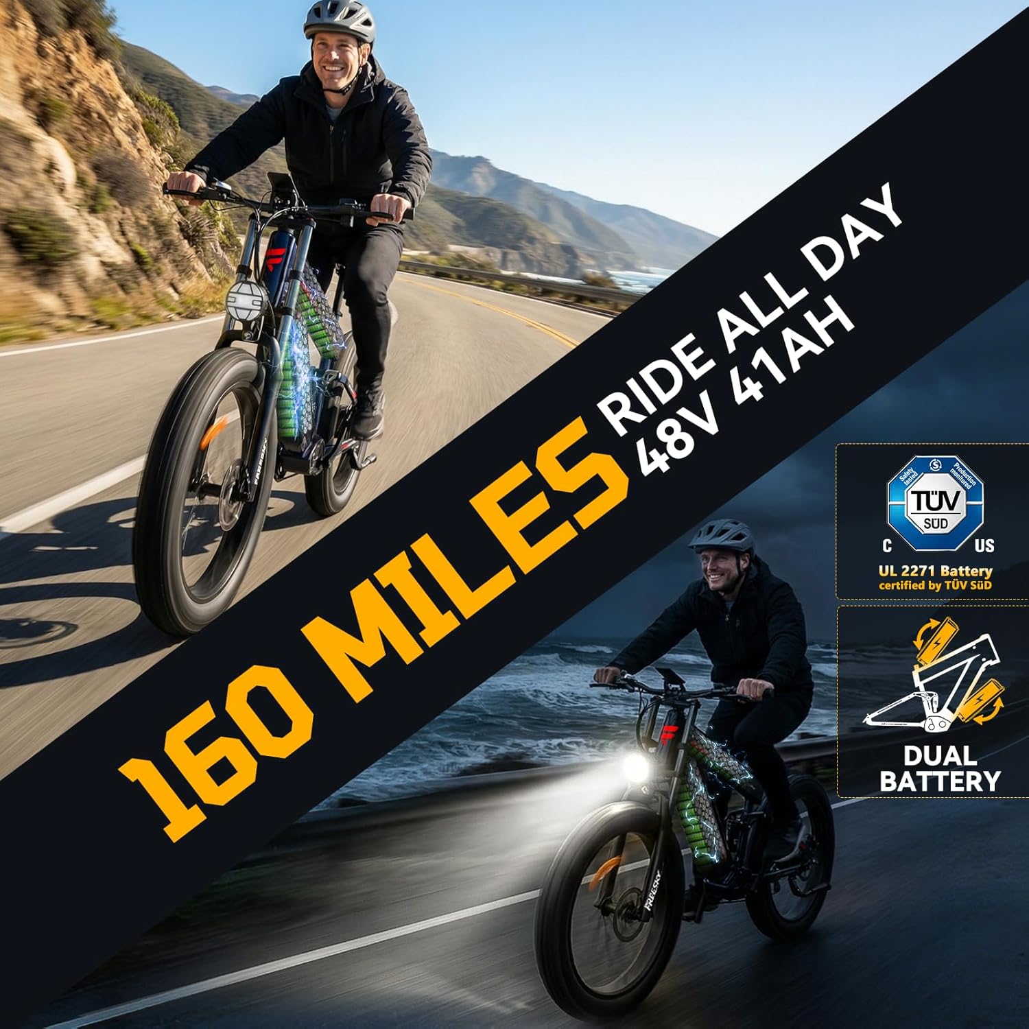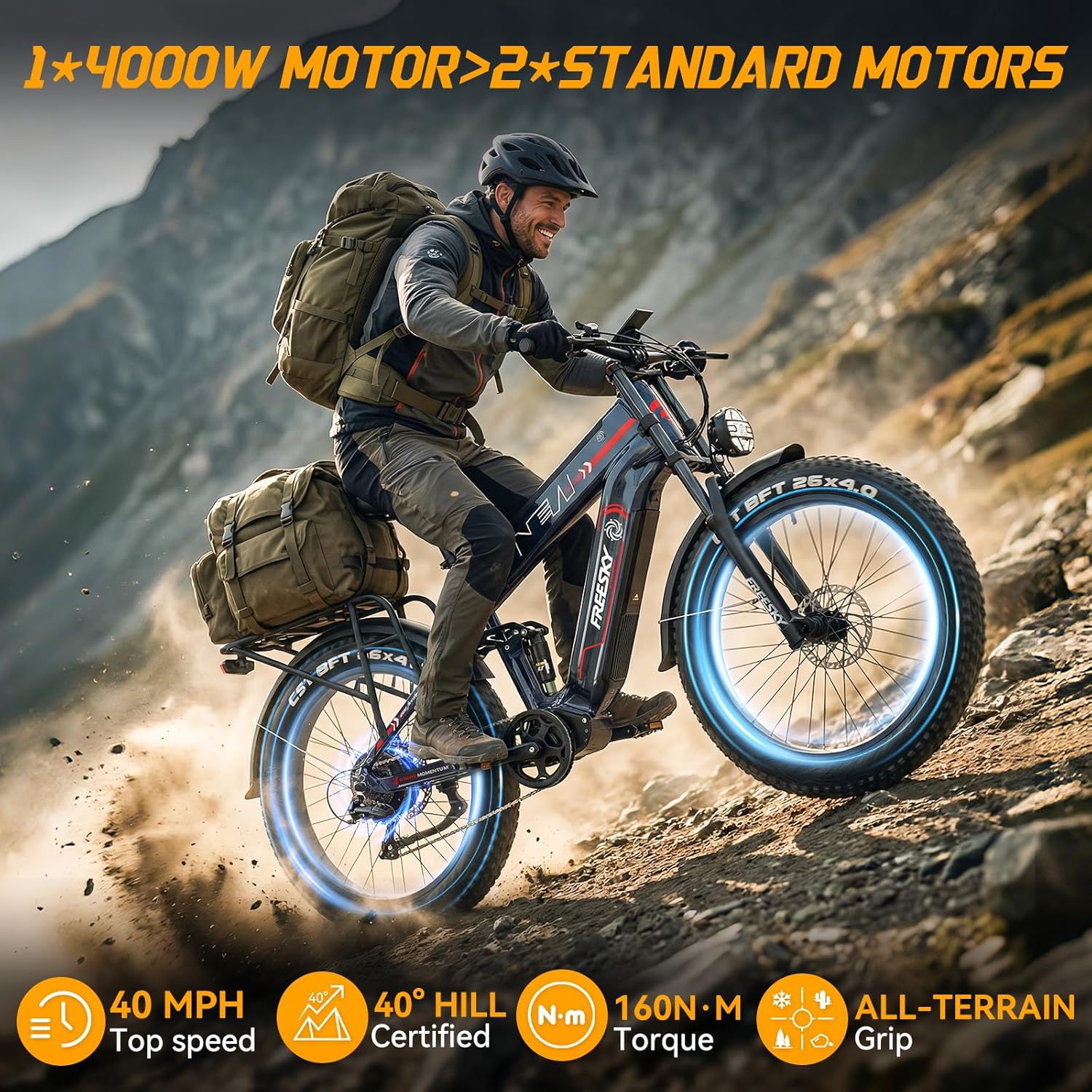 FREESKY Dual Battery 48V 41AH 160 Mile 40MPH Electric Bike for Adults, 4000W High-Torque Single Motor Long Range Fast Fat Tire Ebike, 26″ Full Suspension Mountain E Bike, UL 2849 Certified by TÜV