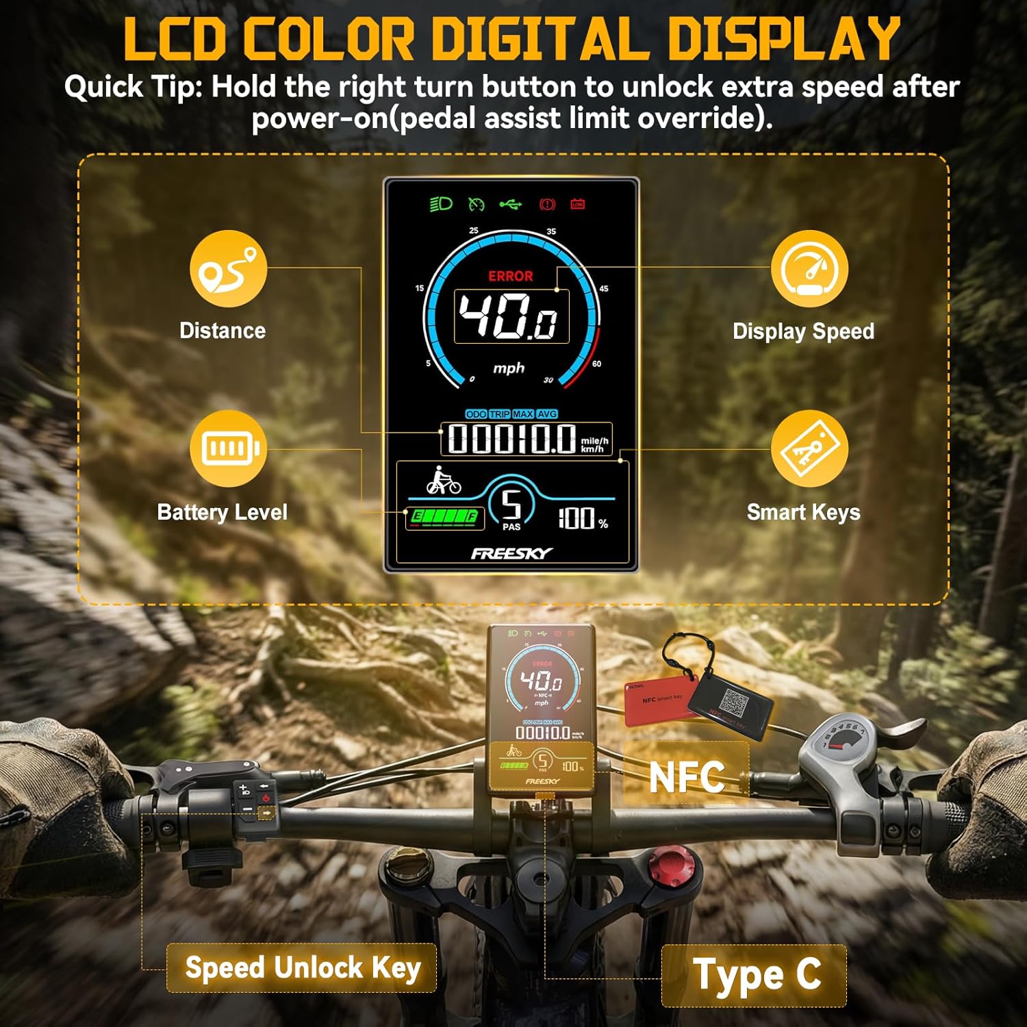 The FREESKY Dual Battery Electric Bike is designed for both adventure and daily commuting. With a powerful 3000W peak motor, it provides impressive torque and speed, reaching up to 40MPH. The dual battery system ensures a long range of 90-160 miles per charge, making it suitable for extended rides without the worry of running out of power.