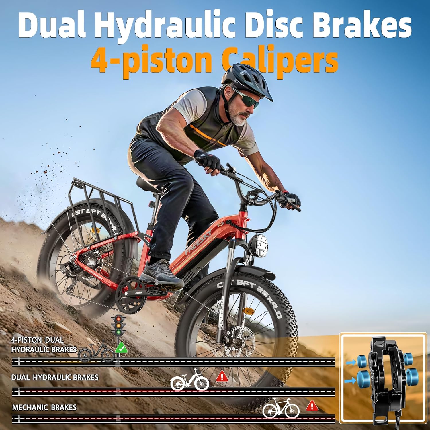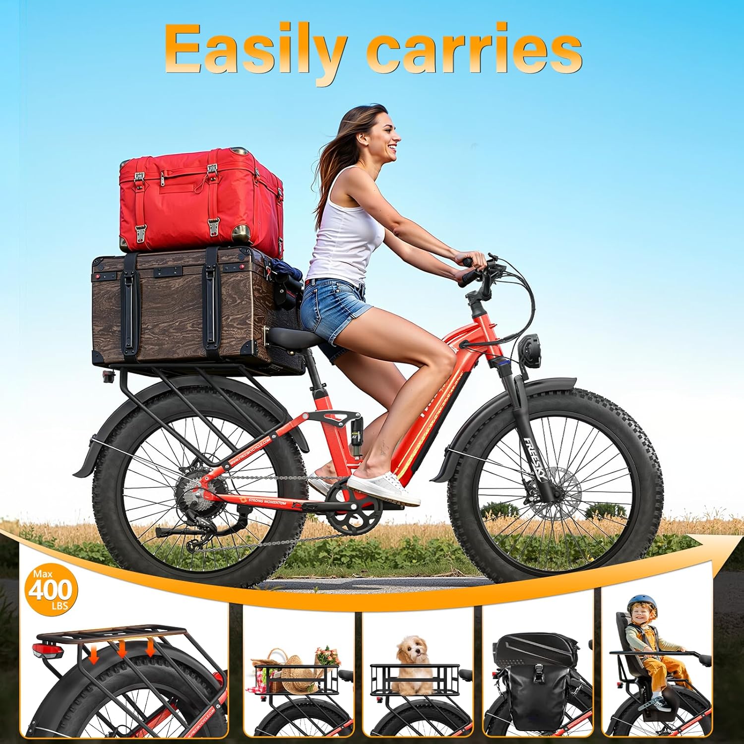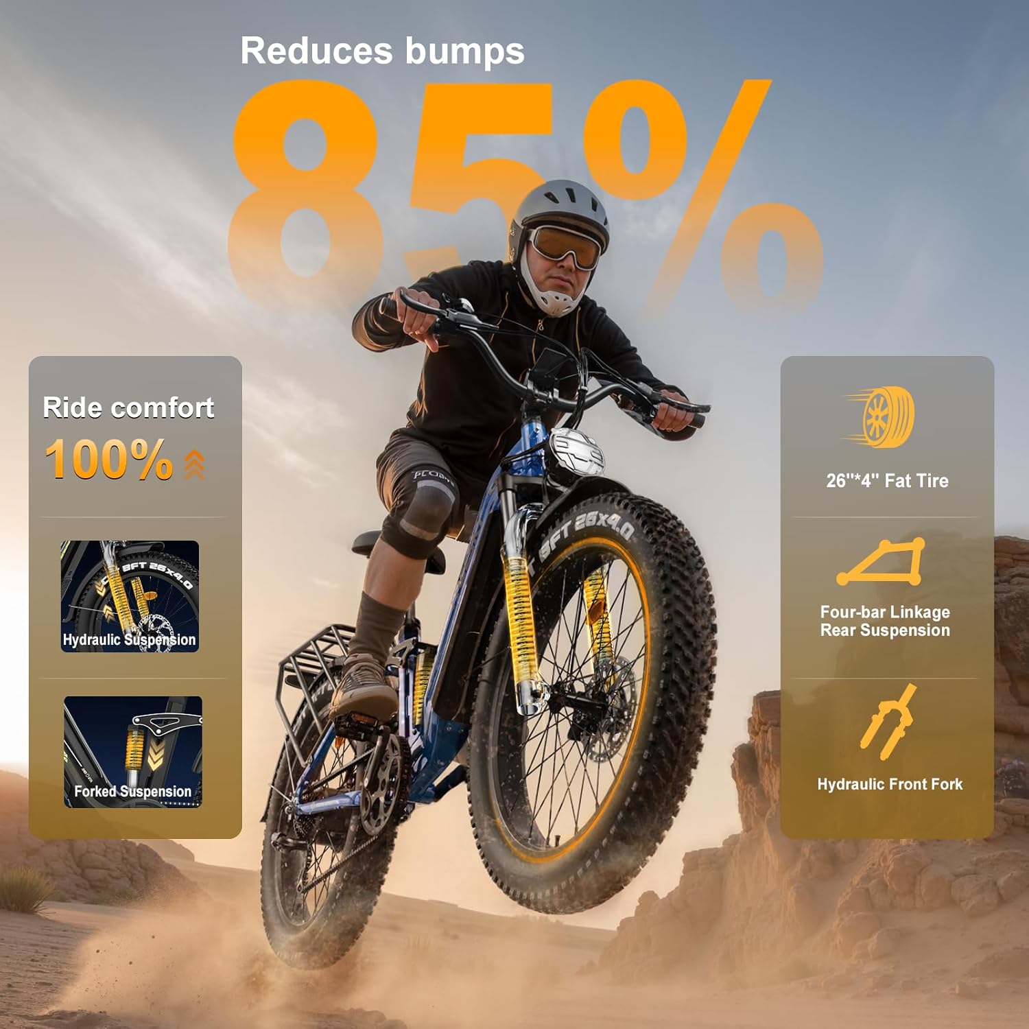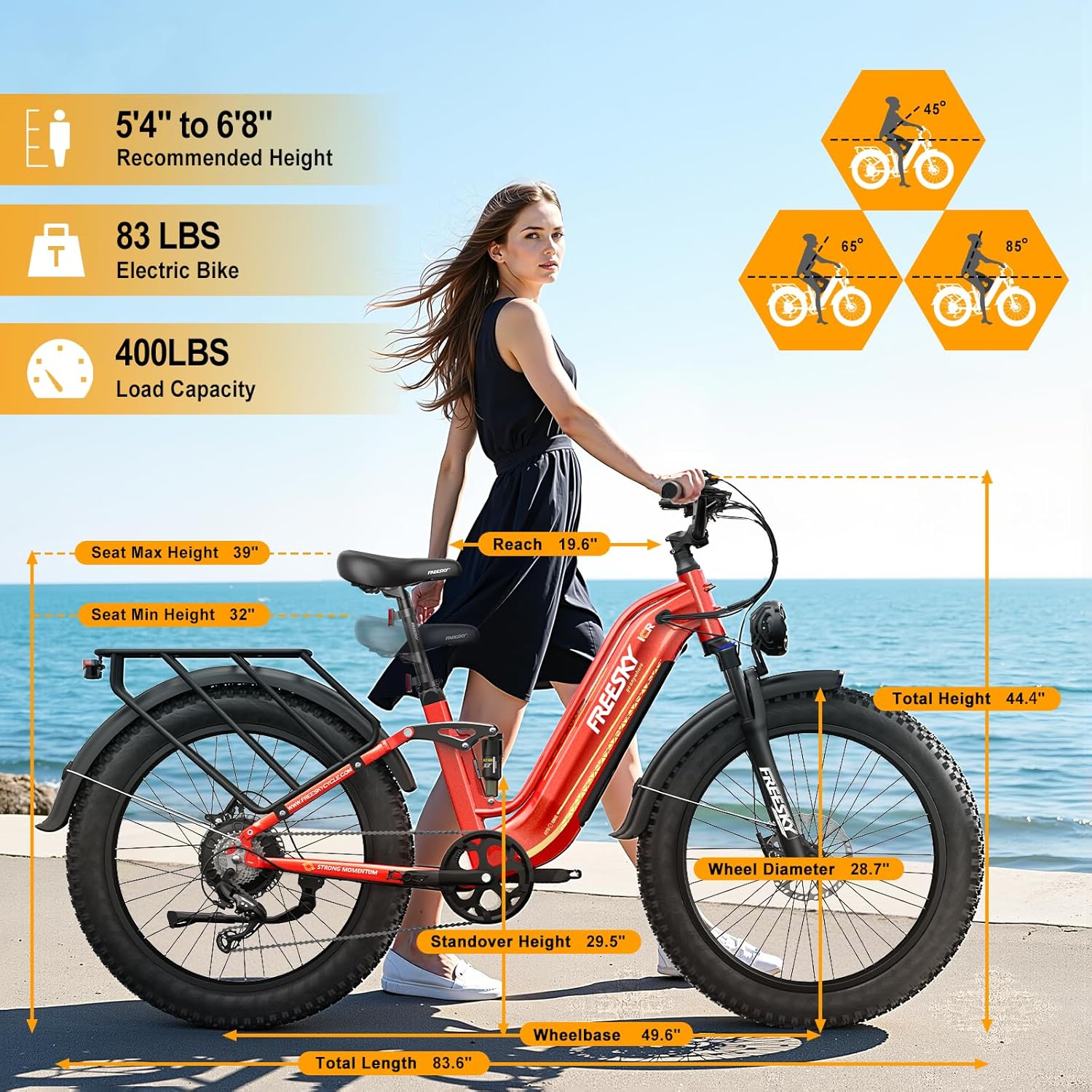 FREESKY Wildcat Ultra 3000W Electric Bike for Adults 105mile Long Range Step-Thru Ebike Motor 37MPH Dirt E Bike 25Ah Samsung Battery 26” Fat Tire Electric Bicycle Full Suspension for Commute