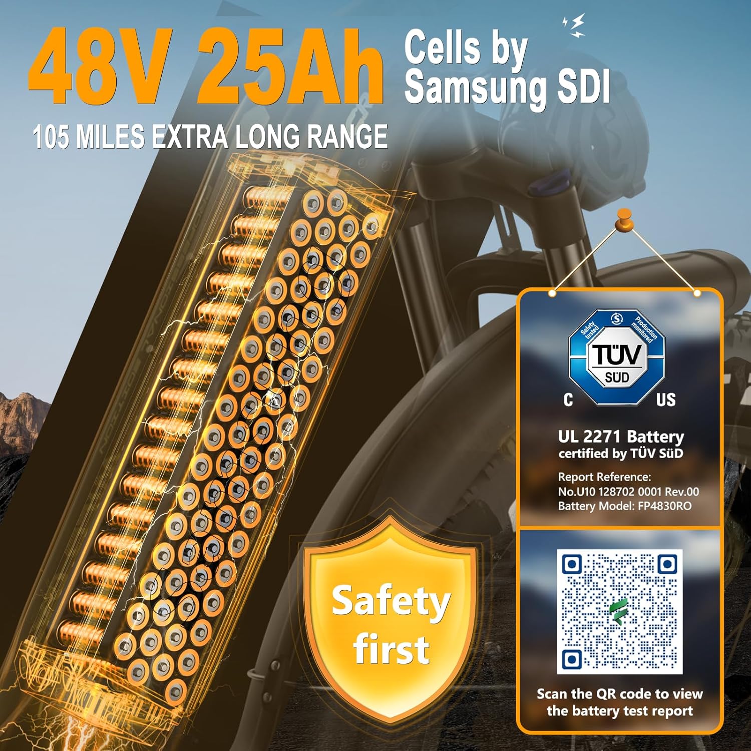 The FREESKY Wildcat Ultra is designed for adults seeking a reliable and efficient mode of transportation. This electric bike features a powerful 3000W motor that allows for speeds up to 37MPH, making it suitable for both commuting and off-road adventures. With a long-range capability of up to 105 miles on a single charge, it is equipped with a 25Ah Samsung battery, ensuring you can travel further without frequent recharges.