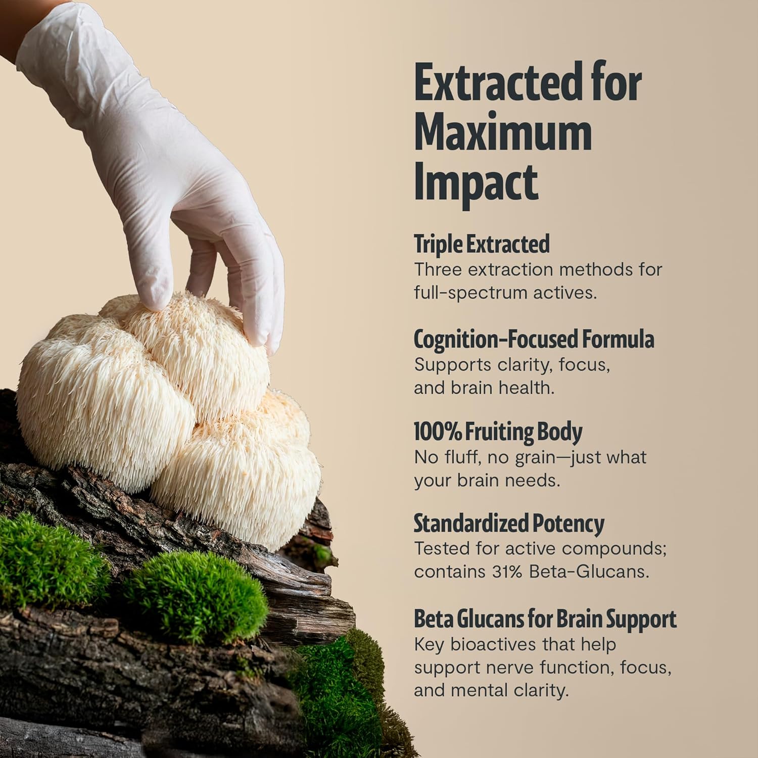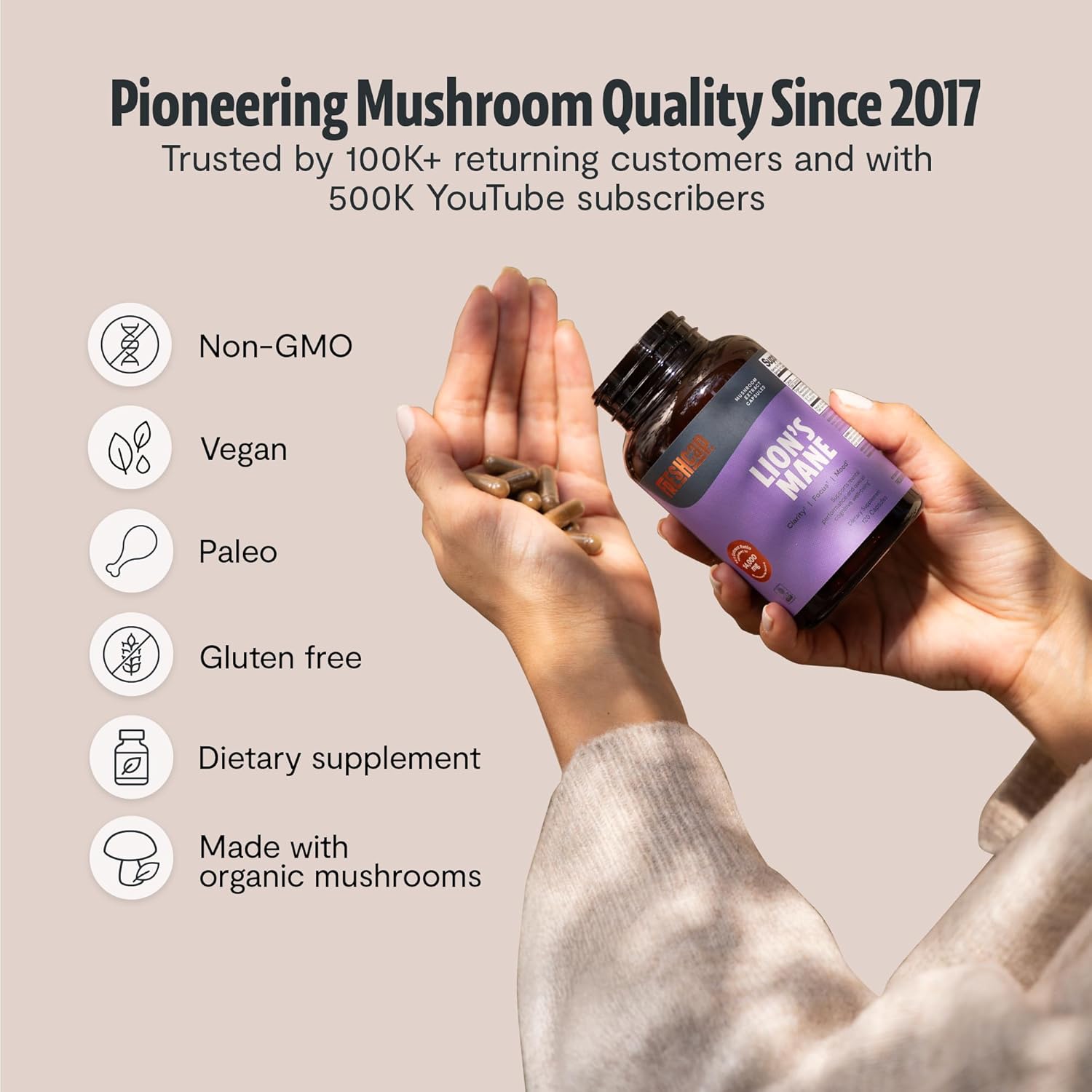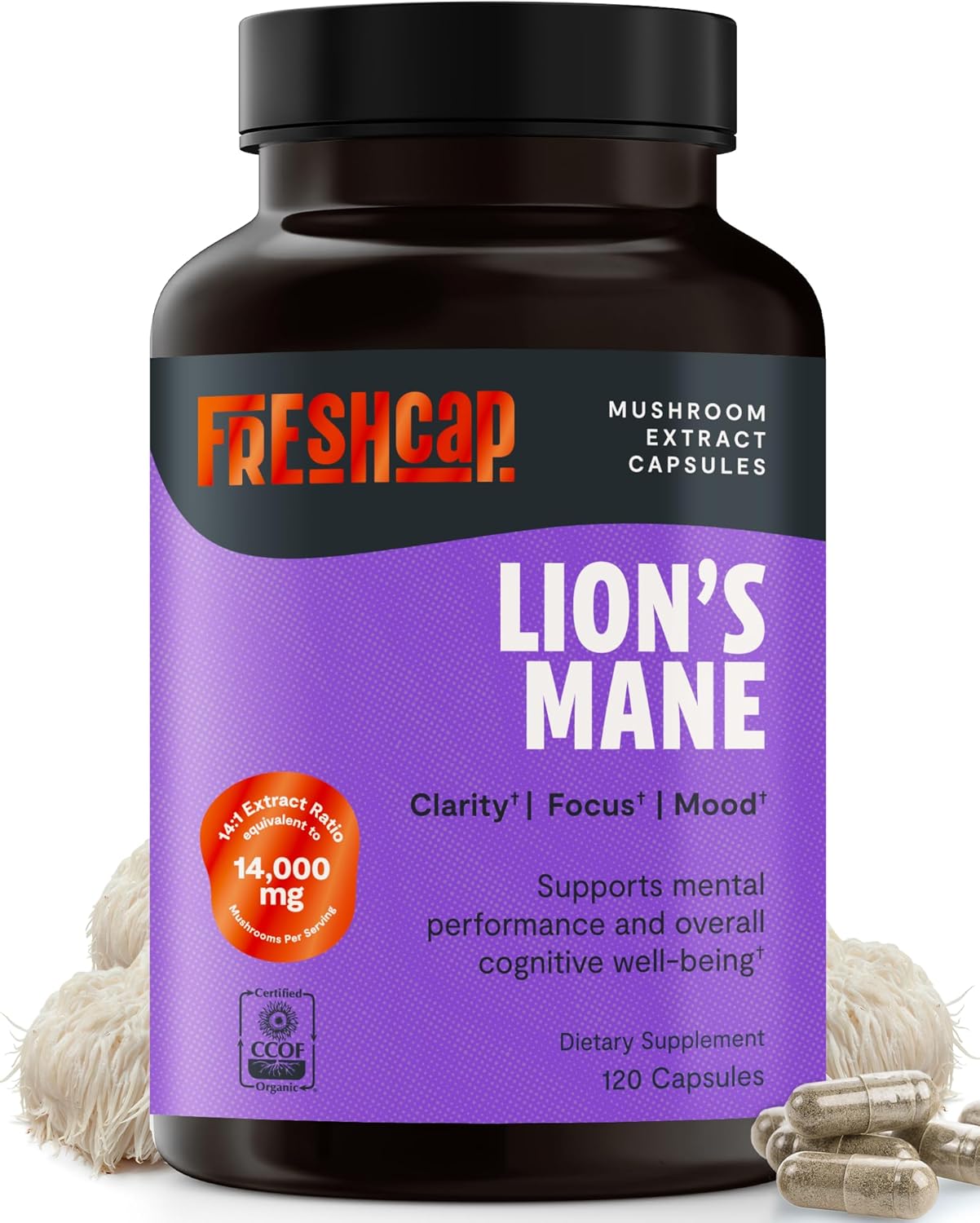 FreshCap Organic Mushroom Capsules Supplement – Fruiting Body Extract (Lion’s Mane, 120 Capsules)