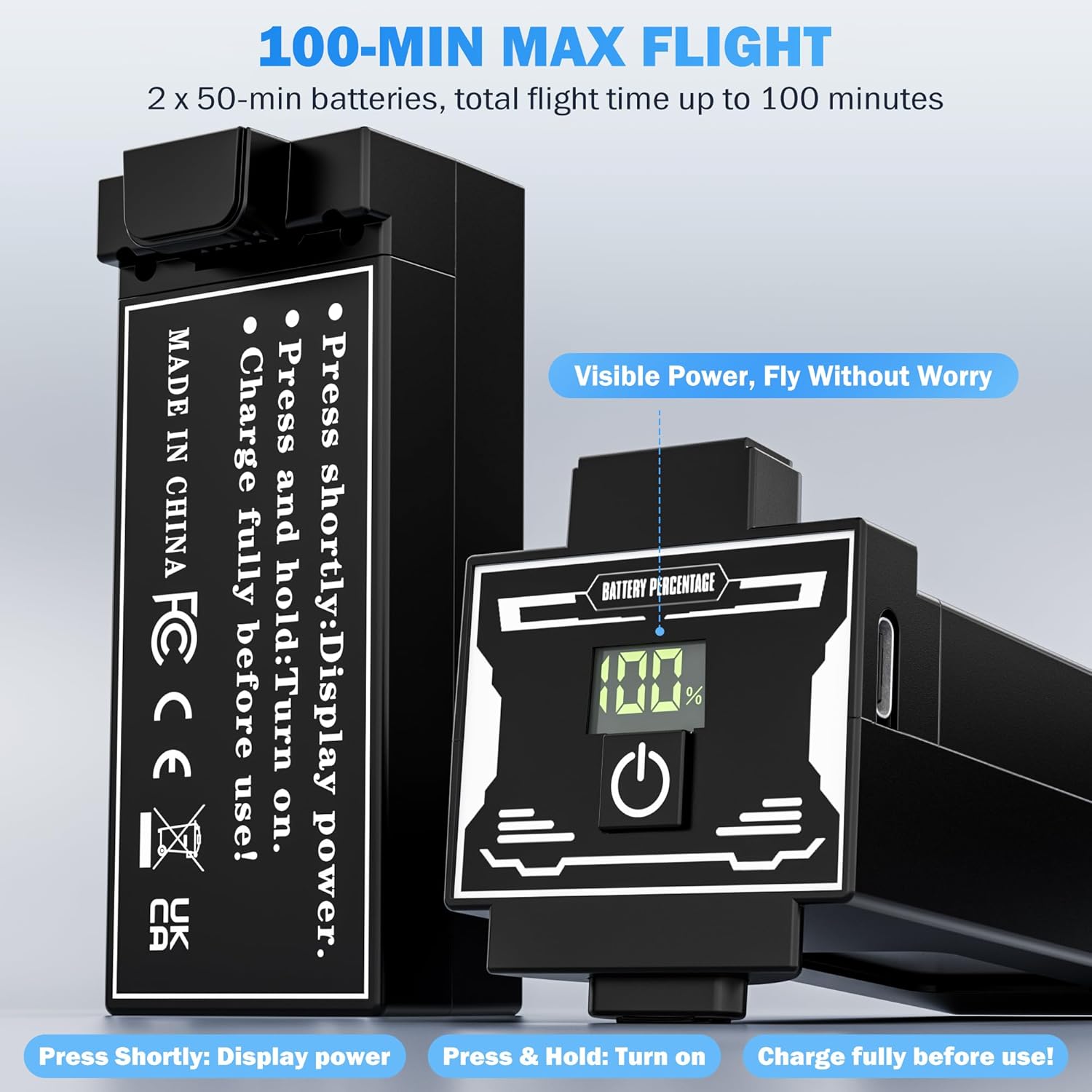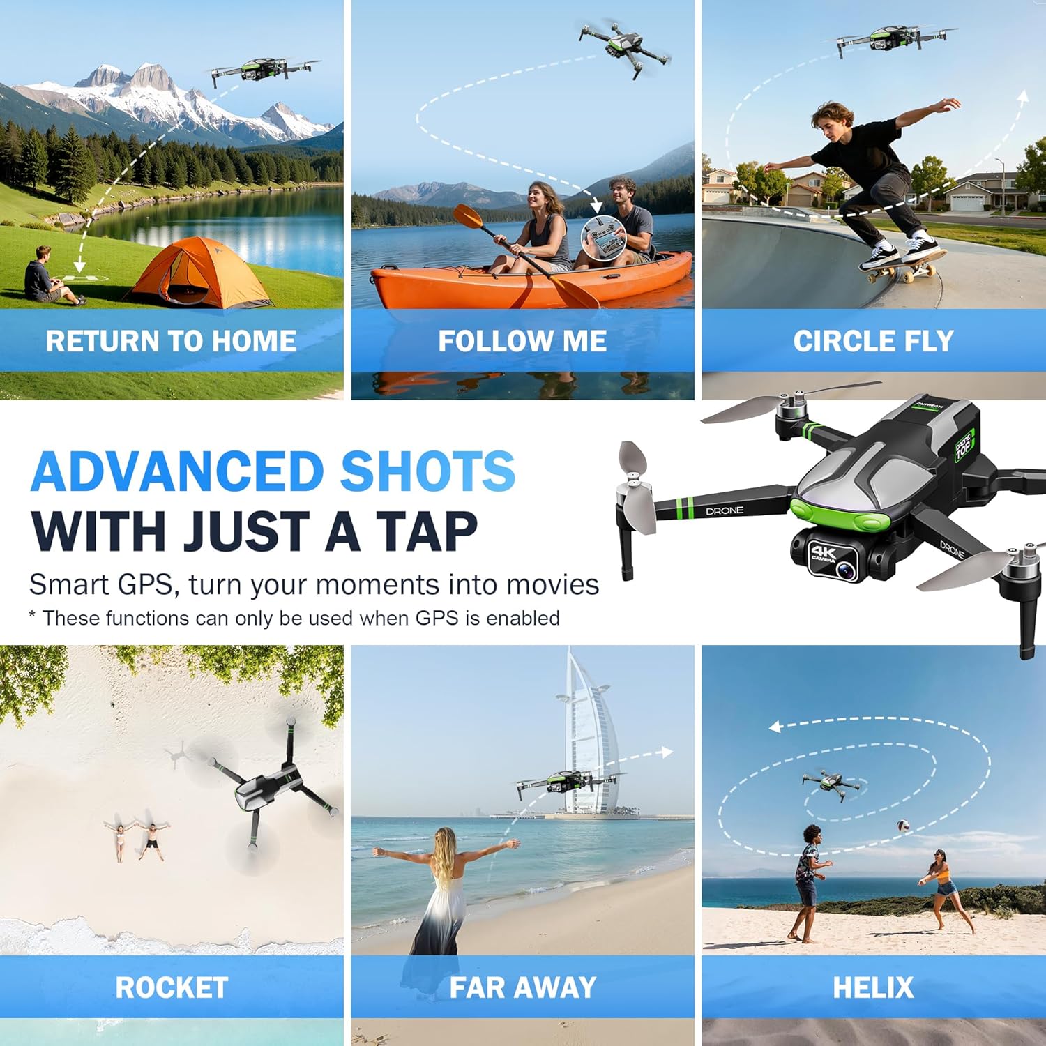 The GPS Drones with Camera for Adults offers a range of features designed for both beginners and experienced users. With 4K video capability and a 5.7" FPV screen, you can capture stunning aerial footage. The drone boasts a remarkable 100-minute flight time, allowing for extended exploration. It includes GPS follow functionality and an auto return feature for added safety. The foldable design makes it easy to transport, and it comes with two batteries for longer usage.
