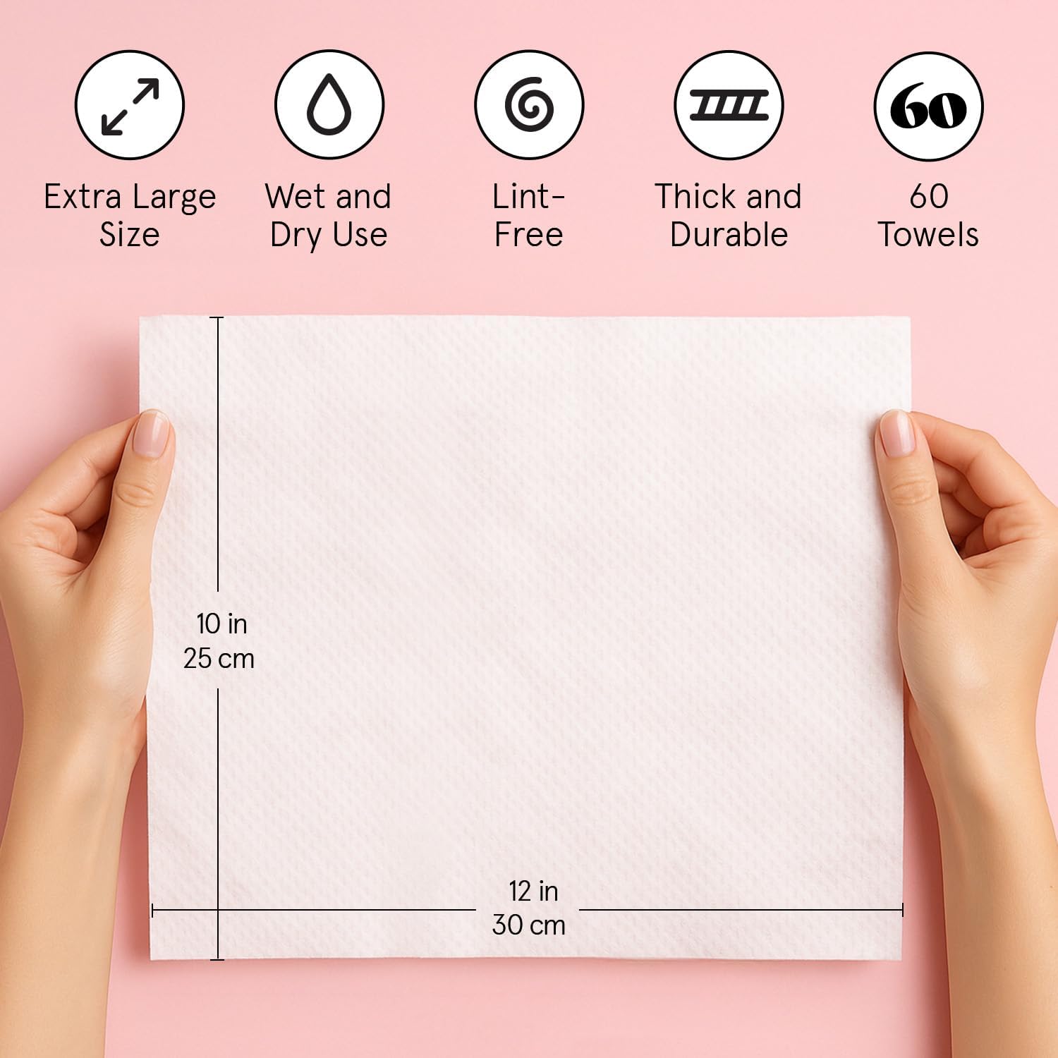 grace & stella Face Towels Disposable – Travel Essentials – Ultra-Soft & Absorbent Face Wipes Towelettes – XL Facial Towels for Cleansing & Makeup Removal – Lint-Free Facial Tissue – Vegan (60 Count)