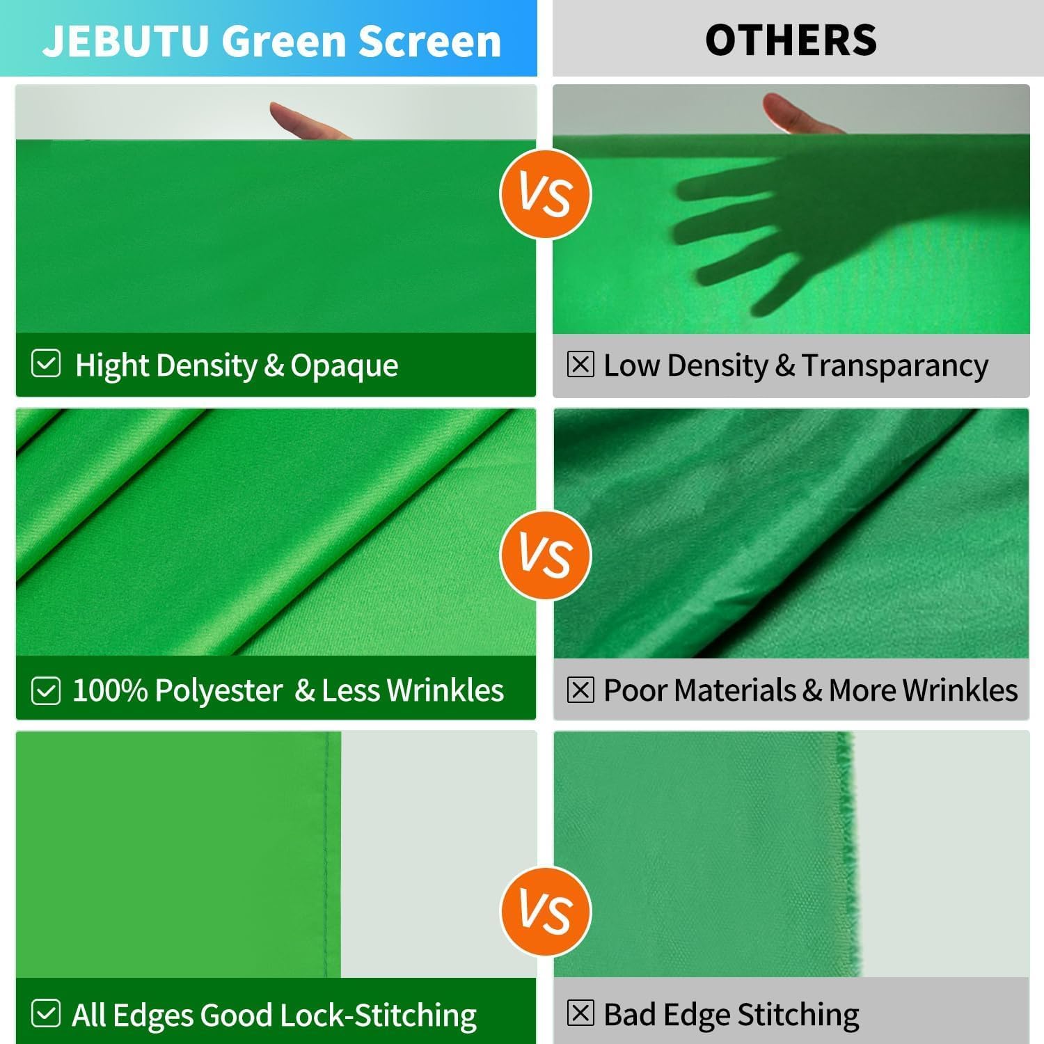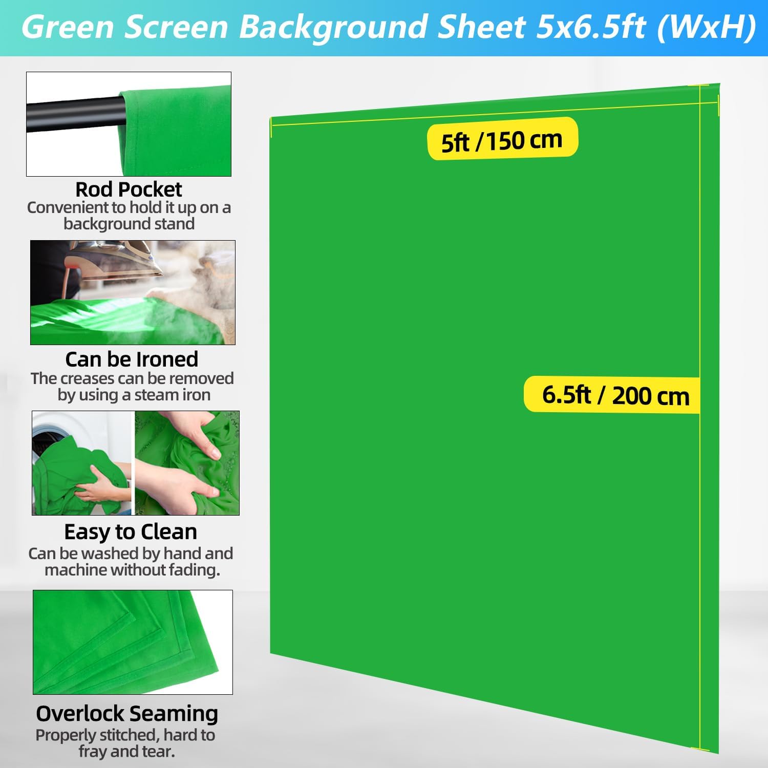 The green screen backdrop measures 5X6.5 feet.