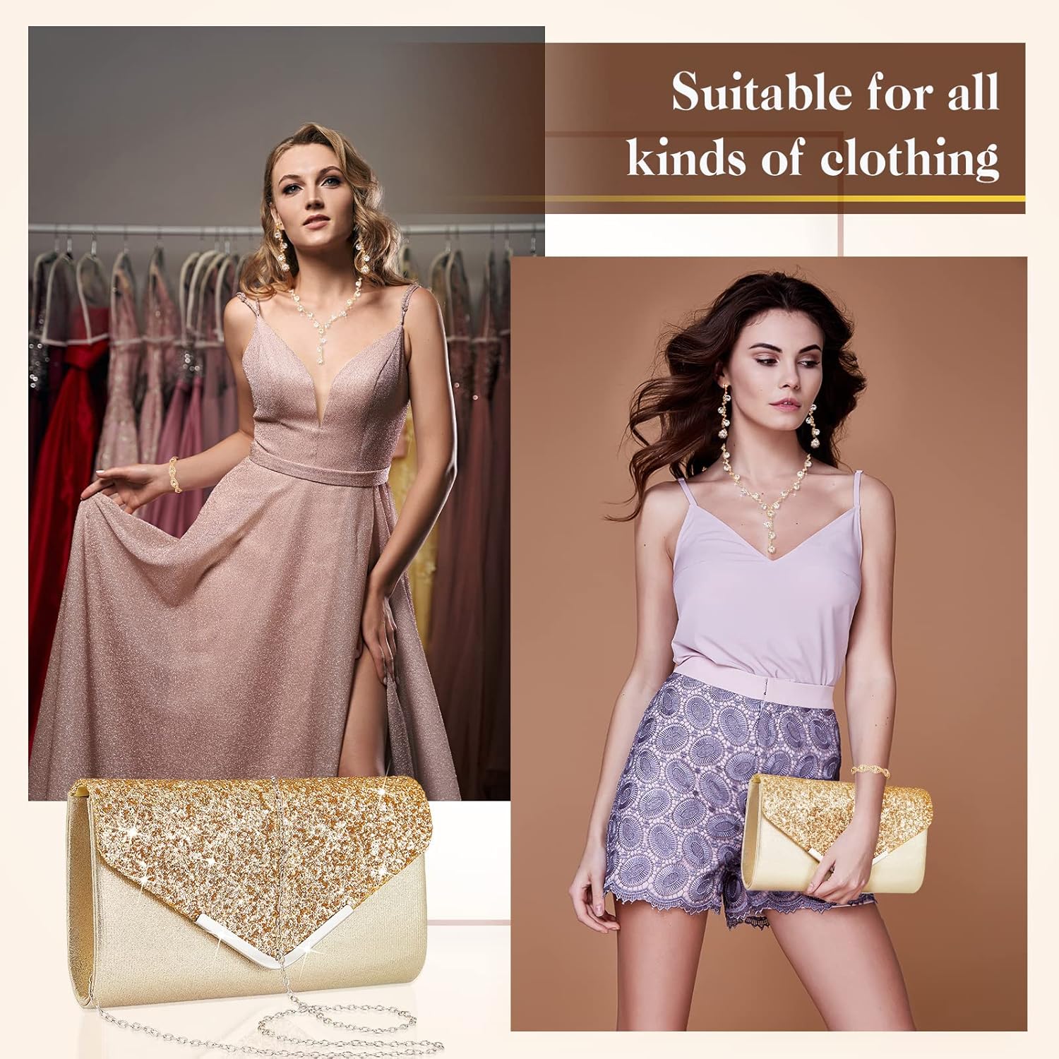 The Henoyso 5 Pcs Purse Rhinestone Jewelry Set is a stylish addition to any woman's accessory collection. This set includes a rhinestone clutch purse, a necklace, earrings, and bracelets, making it perfect for special occasions such as proms or weddings. The elegant design is complemented by shimmering rhinestones that add a touch of glamour.