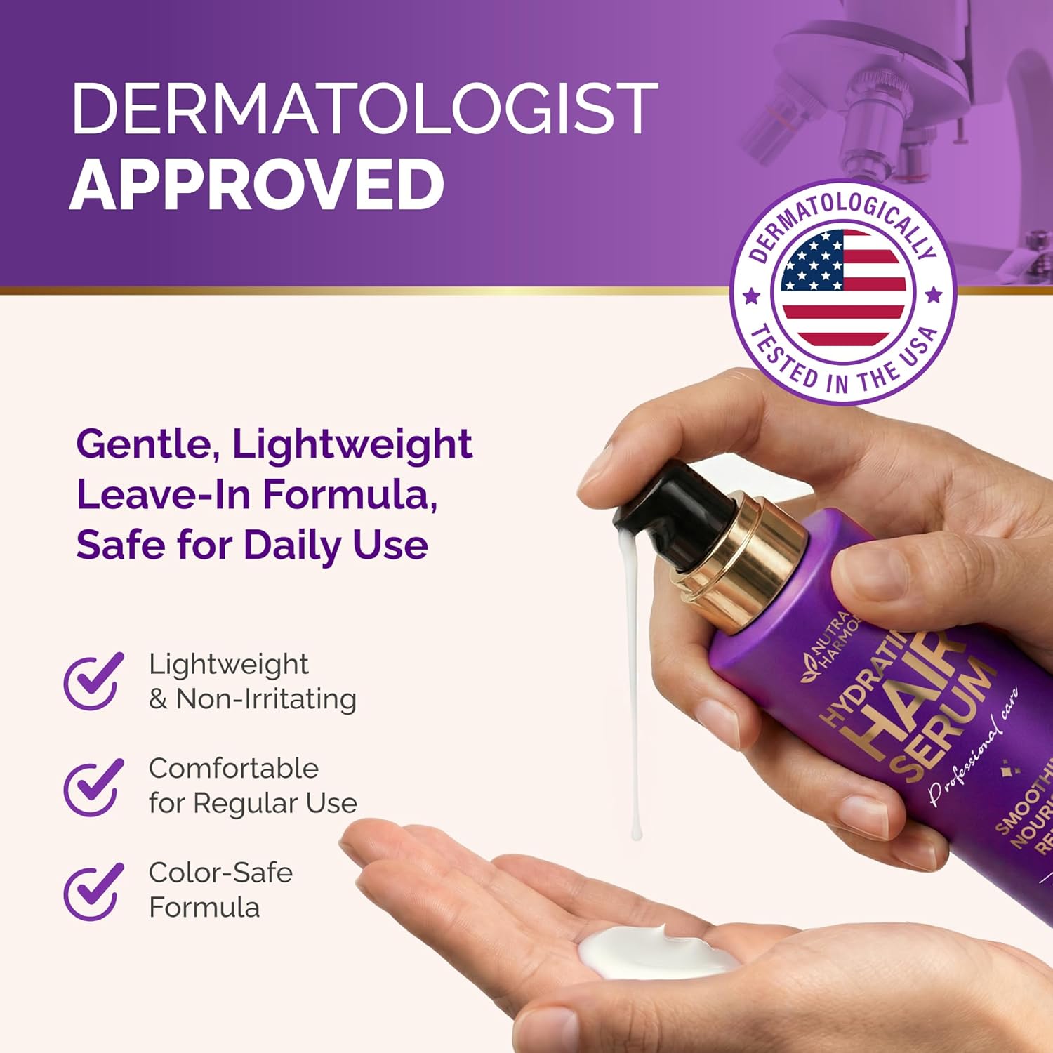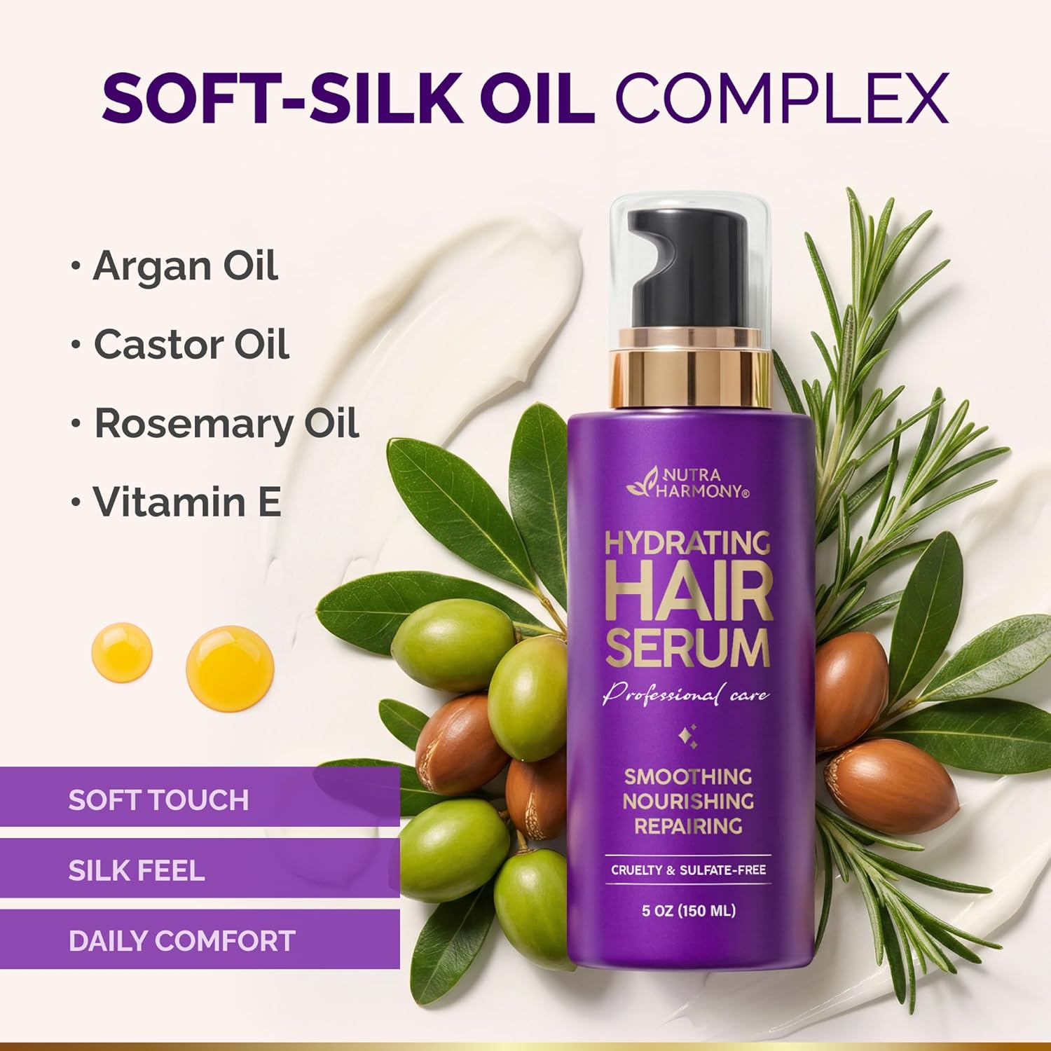 Hydrating Hair Serum for Dry & Frizzy Hair, Lightweight Leave-In Anti-Frizz Treatment, Non-Greasy Split Ends Repair with Keratin, Biotin, Castor & Rosemary Oils, Smooth Shine & Heat Protection, 5 oz