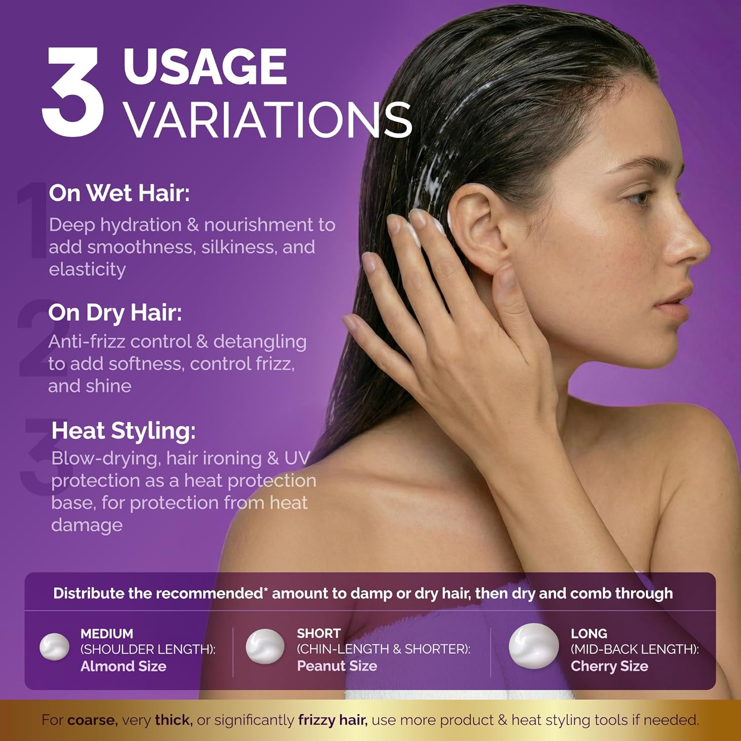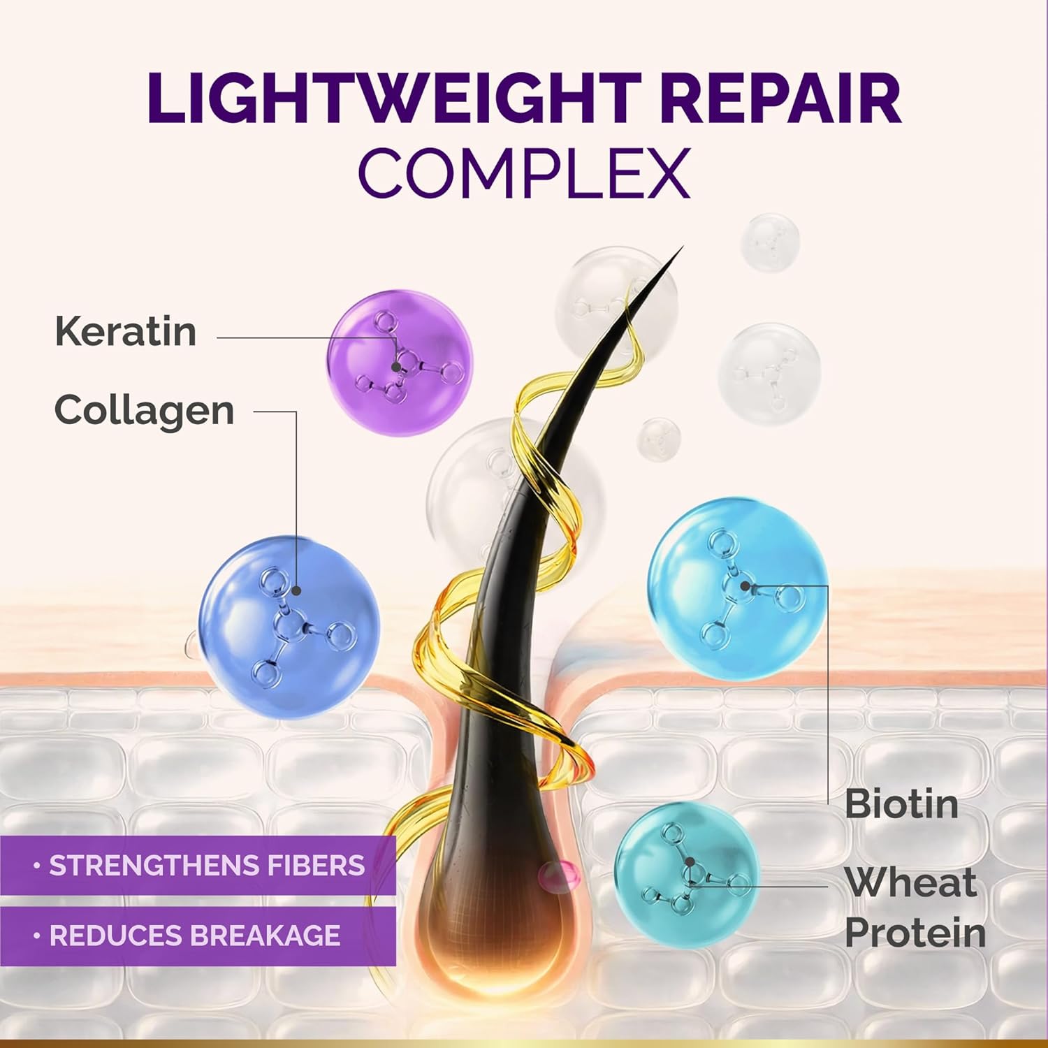 The Hydrating Hair Serum is designed specifically for dry and frizzy hair, offering a lightweight leave-in treatment that helps manage frizz effectively. This serum contains beneficial ingredients such as keratin, biotin, castor oil, and rosemary oil, which work together to nourish and repair split ends. It's non-greasy and provides heat protection, making it suitable for daily use. The serum aims to enhance shine and smoothness, ensuring your hair looks healthy and vibrant.
