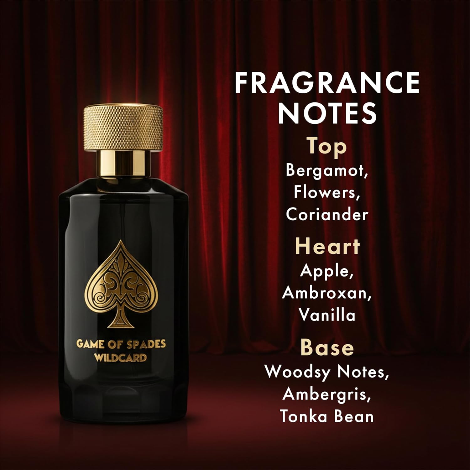 Jo Milano Game of Spades Wildcard Parfum Spray | 3.4 oz (100ml) | Vanilla, Apple, Tonka, Oud Wood, Bergamot Scent | Long Lasting Fragrance for Men