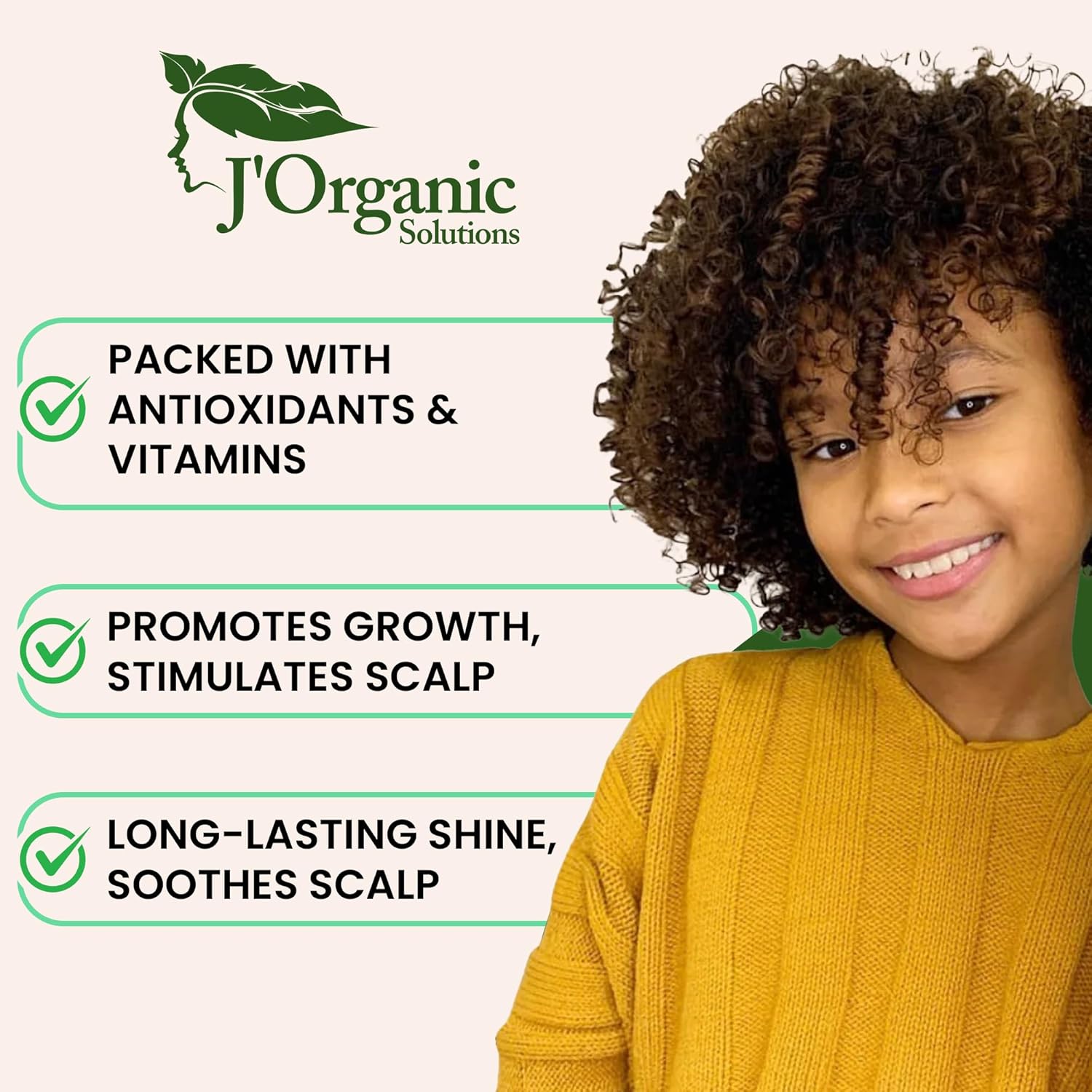 J’Organic Solutions Natural Kid’s Hair Growth Stimulator (Hair Grease) with Lanolin, Sweet Almond Oil, and Castor Oil for Soft, Shiny Hair