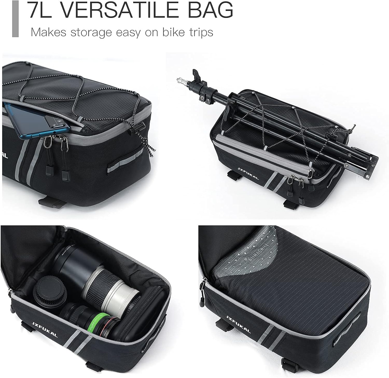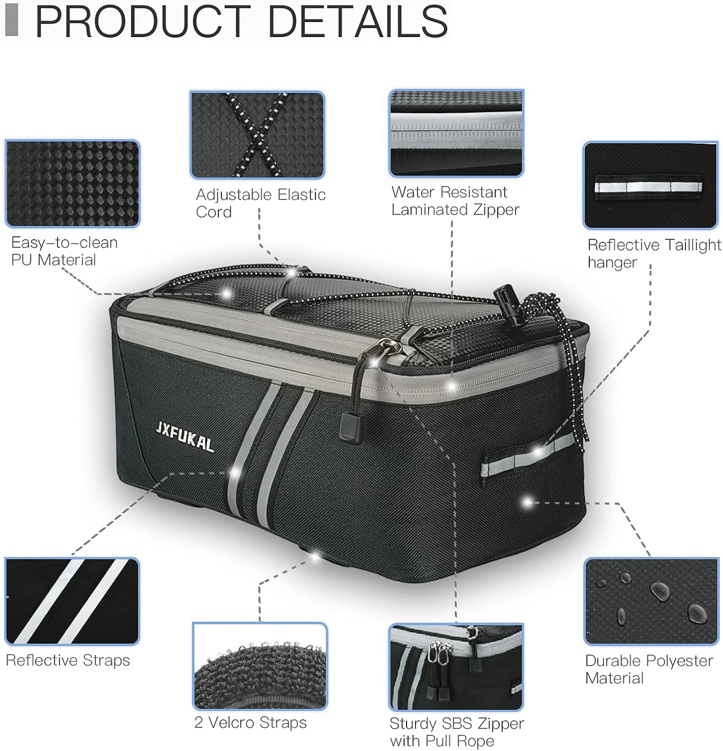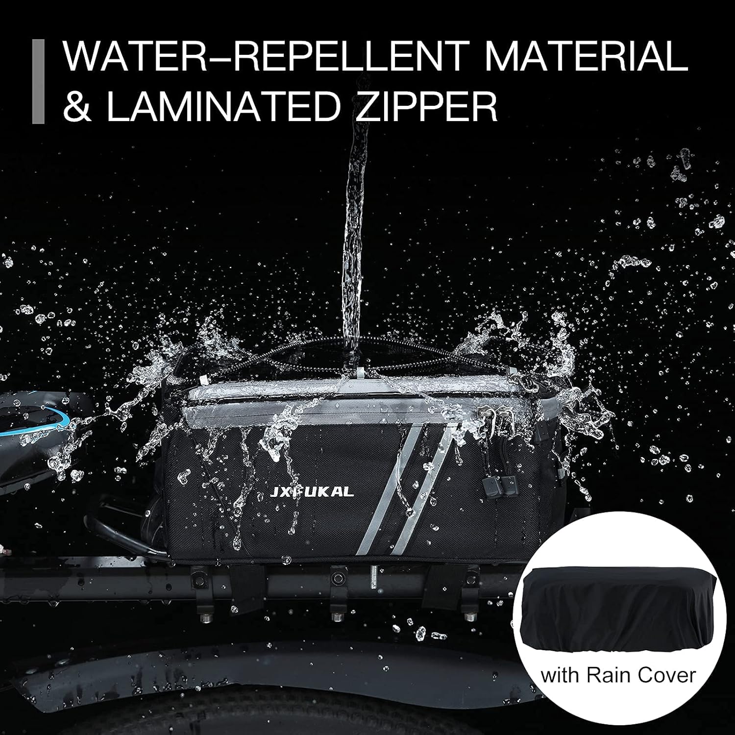 JXFUKAL Rear Bike Rack Bag with Rain Cover, 7L/9L/10L/12L Waterproof Bicycle Ebike Saddle Bag Cycling Pannier Trunk Carrier with Reflector & Adjustable Cord for Commuter Travel Outdoor