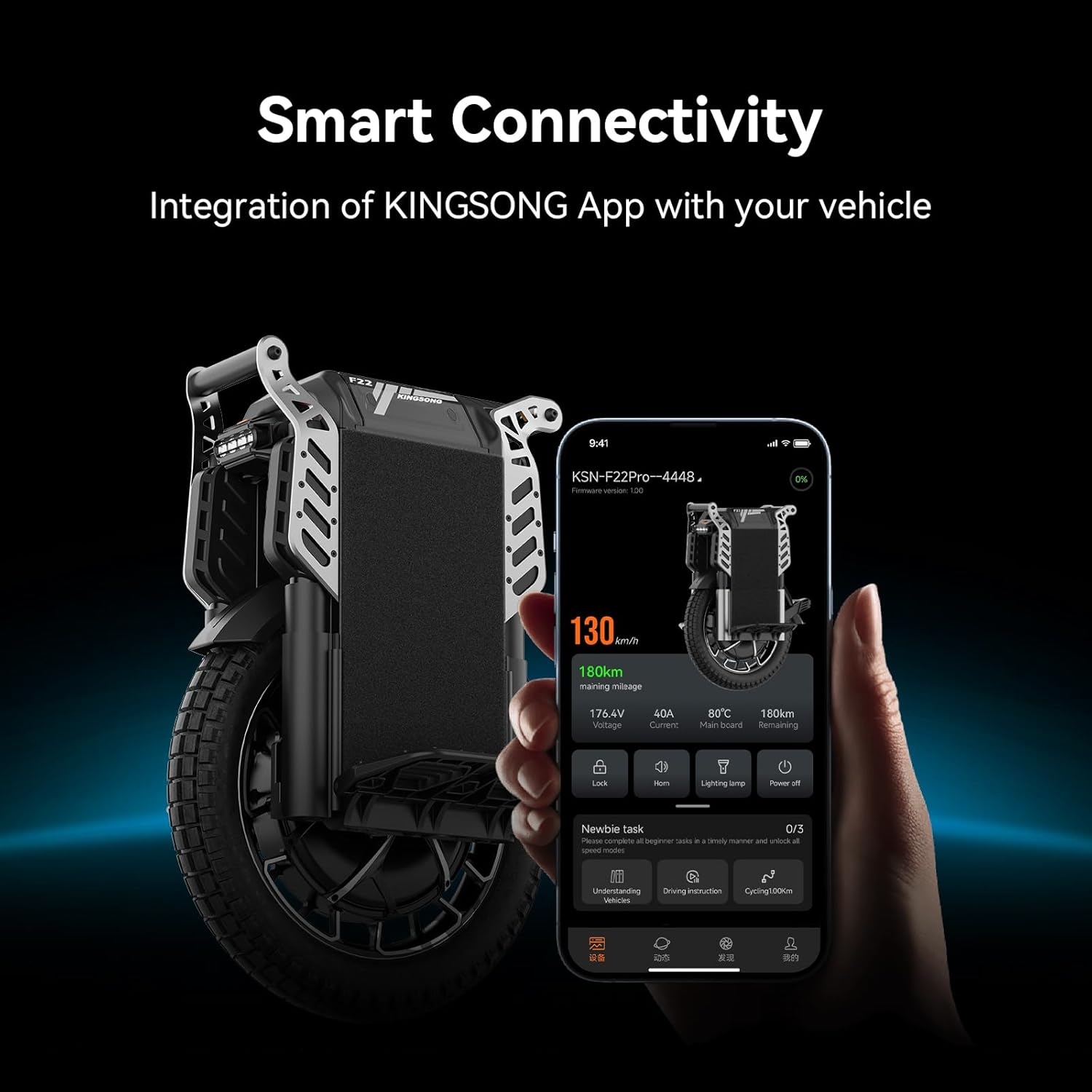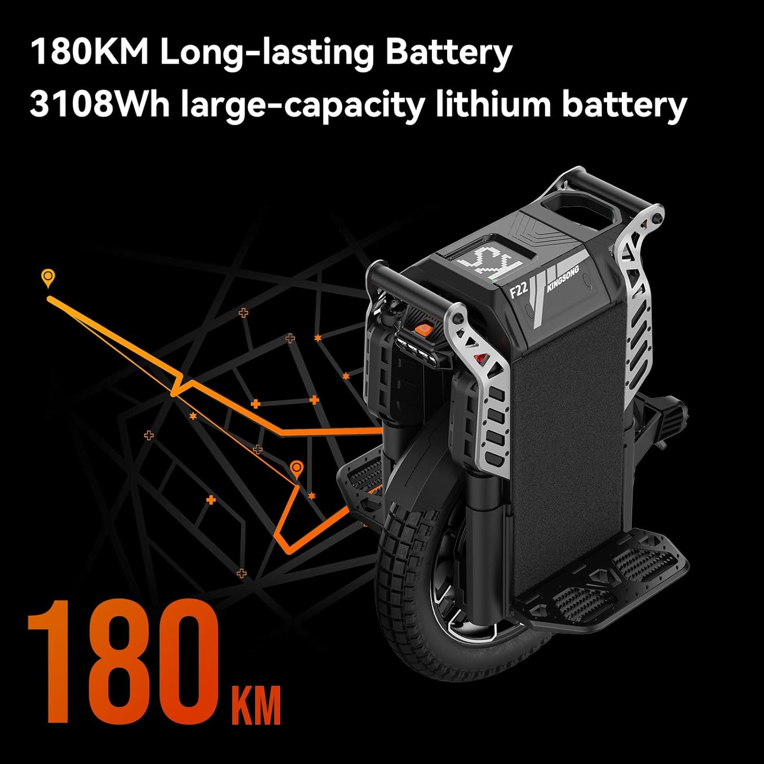 King Song F22PRO Electric Unicycle, Upgraded 180km Range EUC, 12000W Peak Motor, 100mm Suspension, UL2272 Certified Electric Unicycle for Urban Riding (Black)