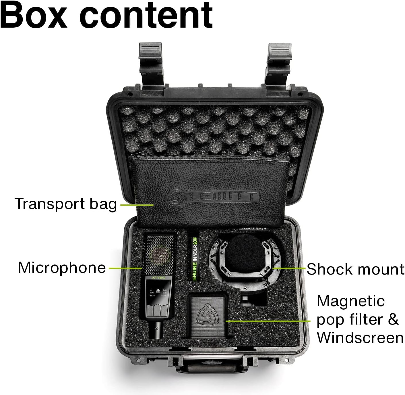 The LEWITT LCT 540 SUBZERO is a large diaphragm condenser microphone designed for ultra-detailed recording. It features a self-noise value below the threshold of human hearing, making it ideal for capturing every nuance of your performance. This microphone is equipped with a shock mount, magnetic pop filter, windshield, and comes in a military-grade protective case with a leatherette carrying bag.