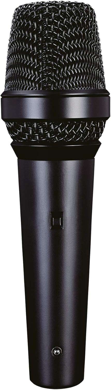 The Lewitt MTP 250 DMS is designed for vocal applications, providing a detailed and authentic sound. It features a built-in spherical wind and pop filter that enhances its frequency response, ensuring a rich and powerful output. The microphone includes an improved internal shock-mount and a rubber-mounted capsule to minimize handling noise. Additionally, the recessed on/off switch prevents accidental activation, allowing for easy handling during performances.
