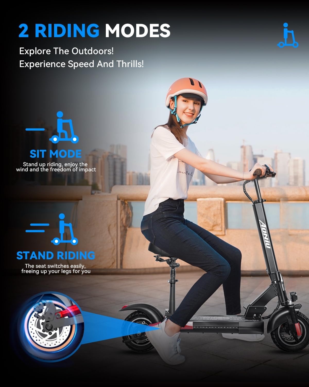 M4 Electric Scooter for Adults with seat 25-30 mph Fast Speed 31-37 Miles Long Range Heavy Duty 300+ lbs 10 Inch Off Road Foldable e Scooter Mobility e Scooters for Girls Men Teens Bike