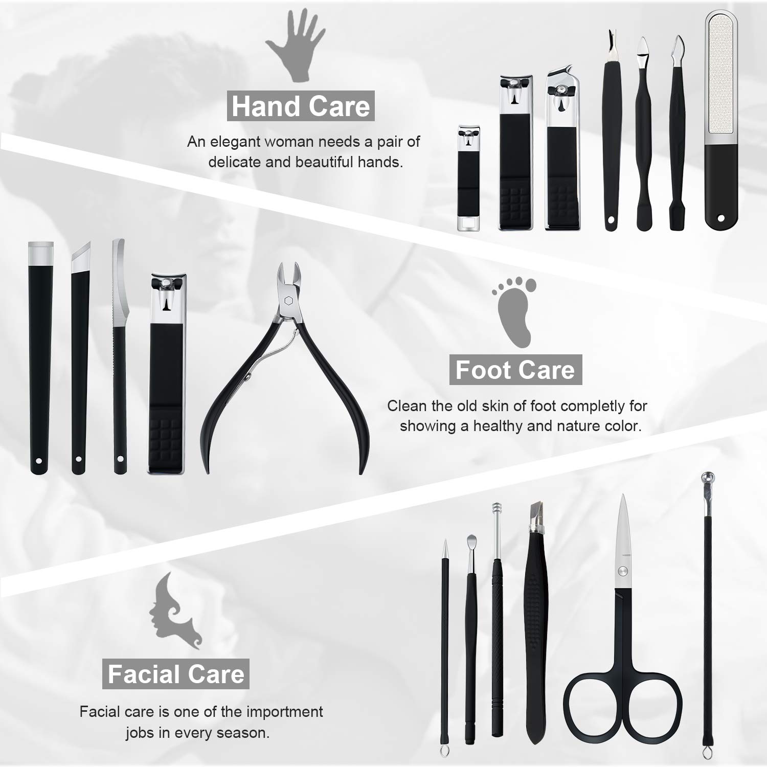 - Comprehensive 18-piece set for various grooming needs