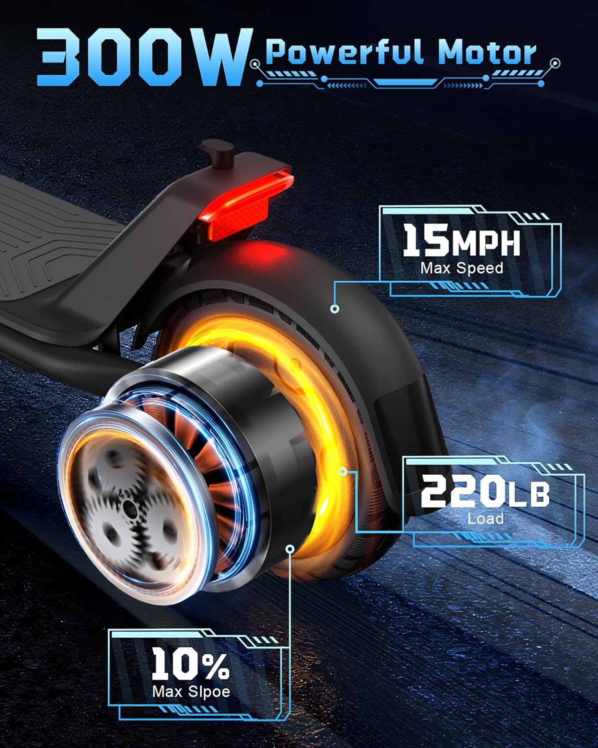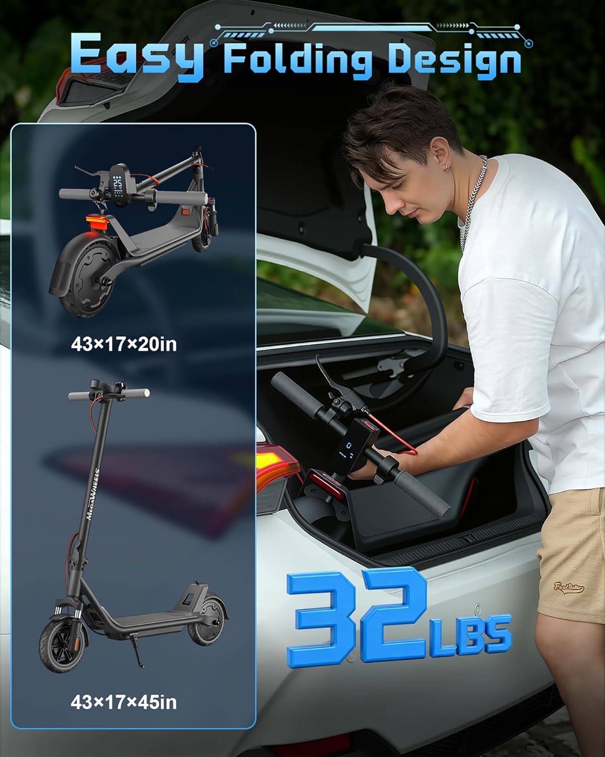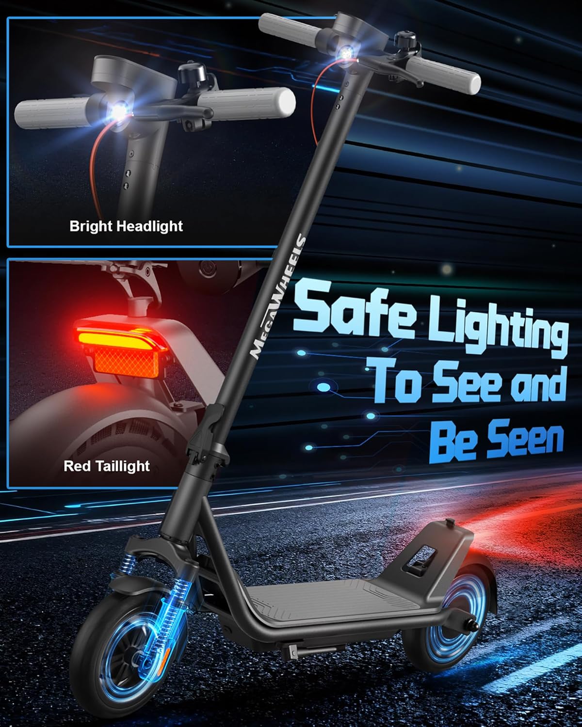 MEGAWHEELS Electric Scooter for Adults with Suspension, 8.5/10in Vacuum Tires, 14/19/28/31Miles, 15MPH Max Speed, Turn Lights, Foldable Electric Scooter for Commuter
