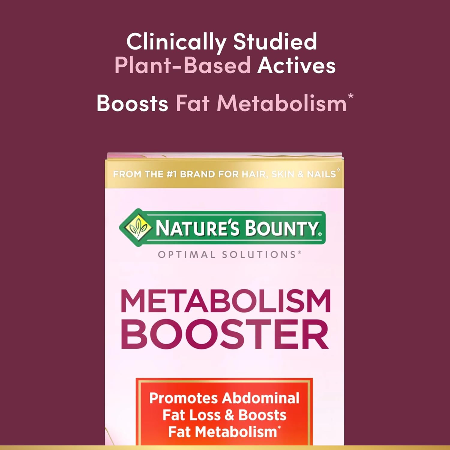 Nature’s Bounty Optimal Solutions Metabolism Booster Supplement, Boosts Fat Metabolism, Promotes Abdominal Fat Loss, With Citrus Extracts and Black Ginger, 60 Capsules