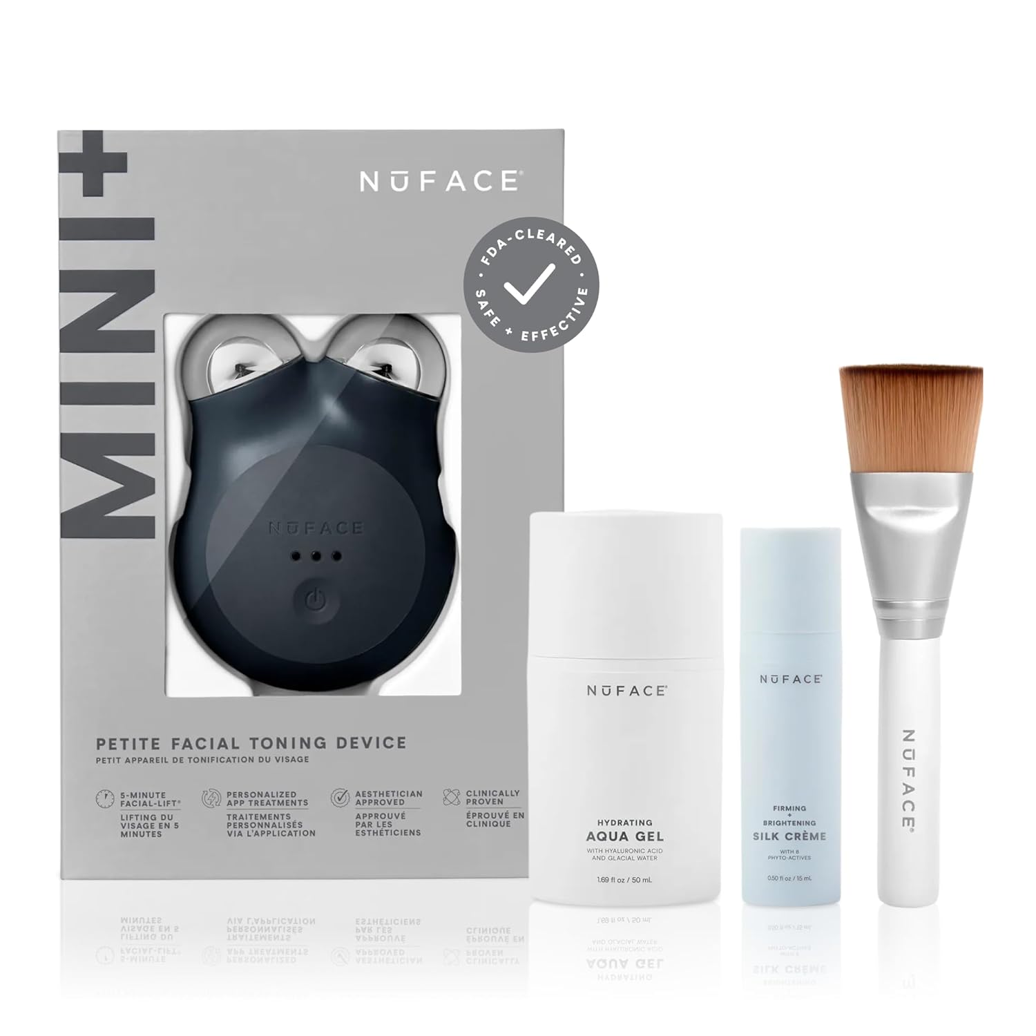 NuFACE MINI+ Microcurrent Facial Device Kit – FDA Cleared Face Sculpting & Skin Tightening Device to Contour, Lift & Tone + Microcurrent Gel Activator & Silk Creme – Midnight Black
