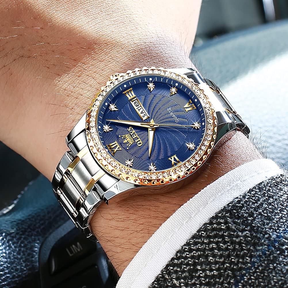 The OLEVS Mens Watches Chronograph is a stylish accessory designed for both business and casual wear. Crafted from stainless steel, this watch combines durability with elegance, making it suitable for various occasions. Its waterproof feature ensures reliability, while the luminous display offers visibility in low light conditions. This watch is lightweight, weighing only 3.53 ounces, which adds to its comfort during wear.