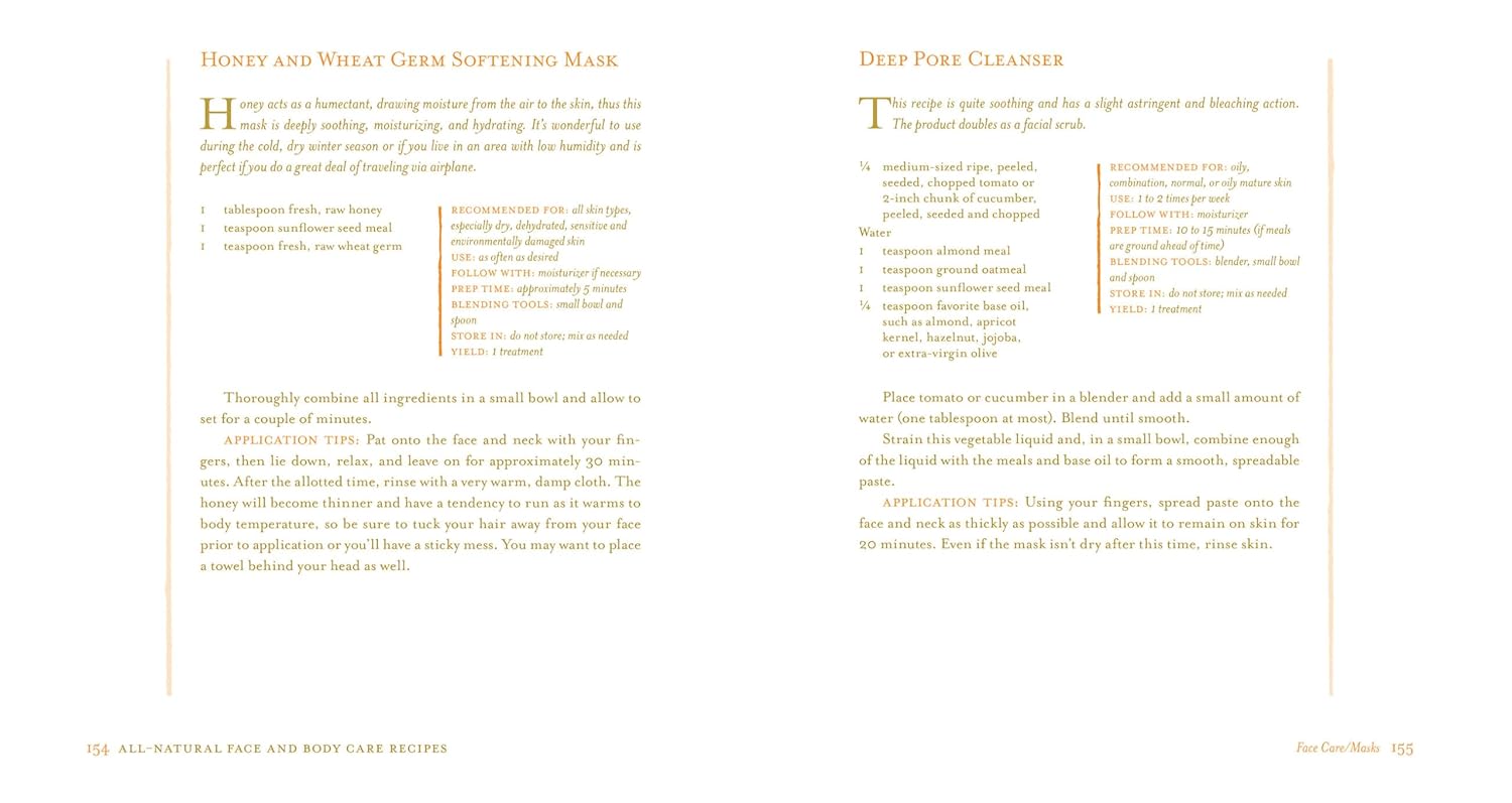 Discover the joys of all-natural body care with this comprehensive guide by Stephanie Tourles. The book features 175 homemade herbal formulas that utilize fruit, flowers, herbs, and minerals to create products that promote radiant skin and an elevated mood. You can pamper yourself with recipes like Strawberry Cleanser, Pineapple Sunflower Scrub, and Almond Rose Body Lotion. These products are gentle on your skin and free from harsh chemicals typically found in commercial products.