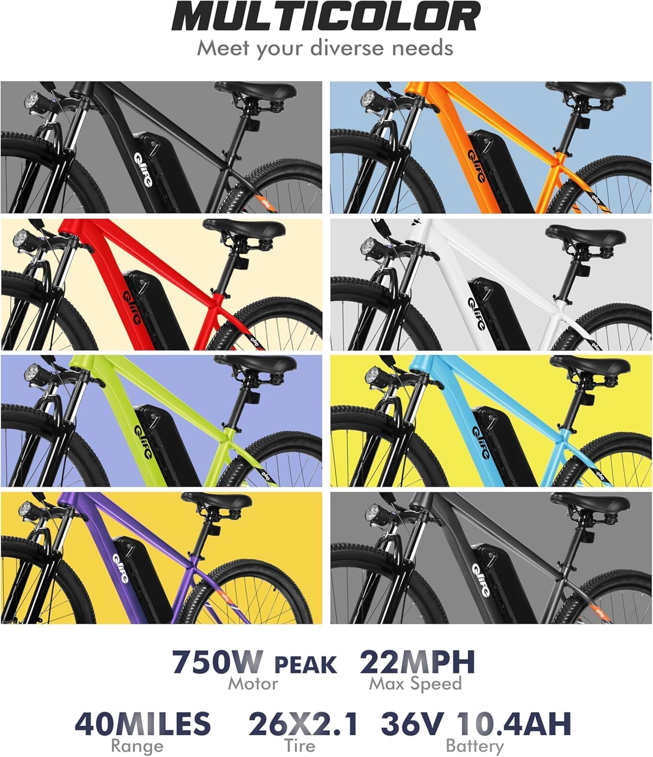 Qlife Racer Electric Bike for Adults – 21-Speed Mountain Lightweight Ebike with Peak 1000W/750W 25MPH/22MPH Brushless Motor, 375Wh Removable Battery, 26X2.1 Tire Step Over E-MTB, Up to 40 Miles