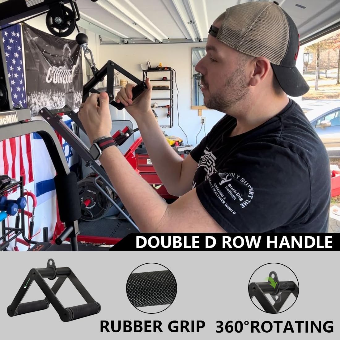 - Double D design for simultaneous arm workouts