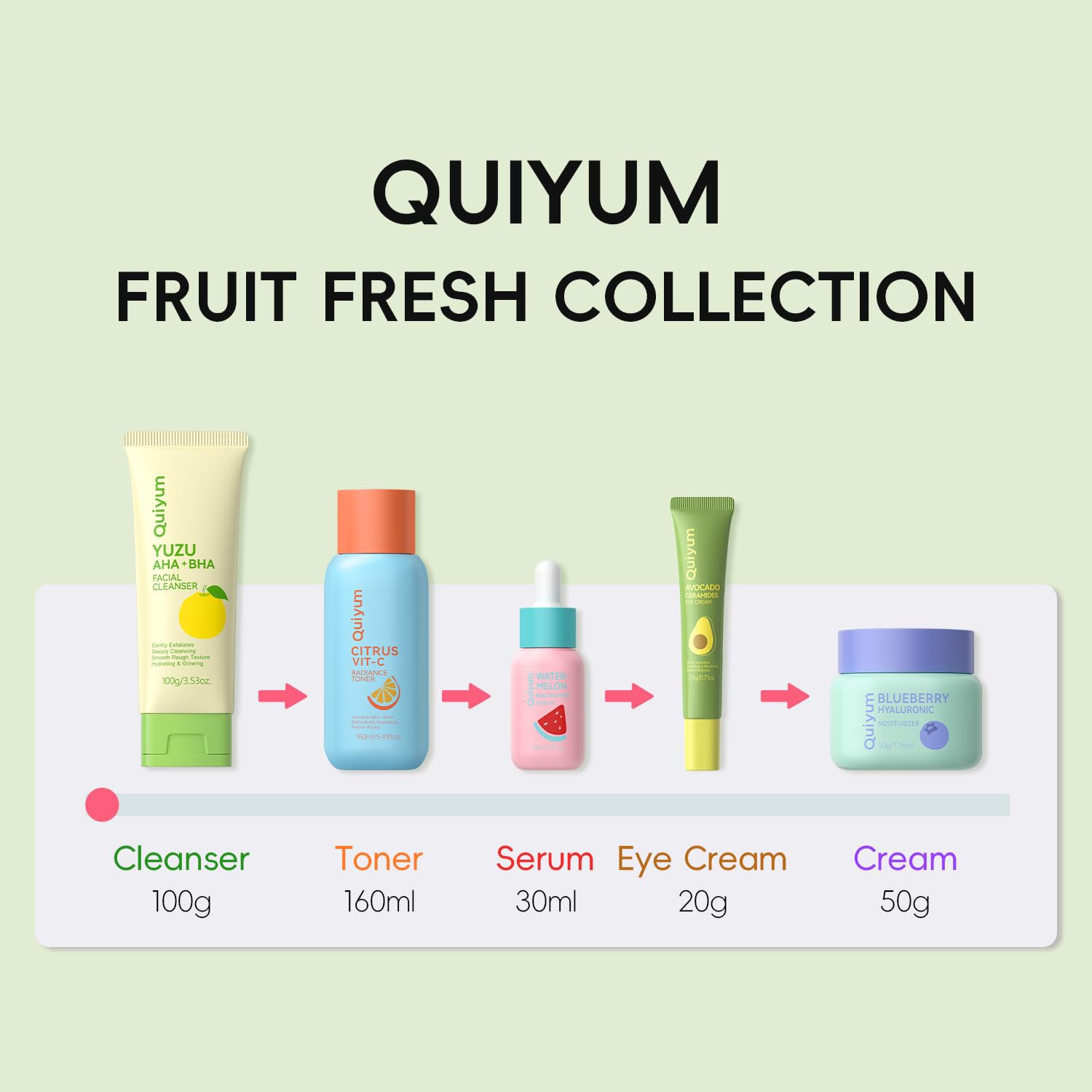 The QUIYUM Fruit Skincare set is suitable for all skin types.