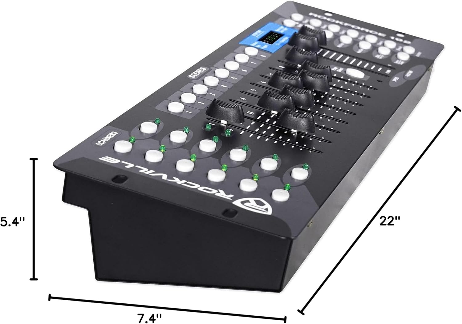 Rockville ROCKFORCE 192-Channel DMX Lighting Controller, Sound-Activated, Programmable Scenes, LED Display, for DJs and Live Events