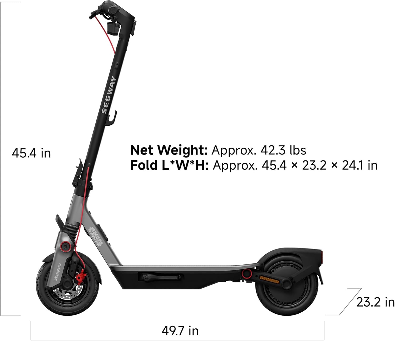 - Self-sealing tubeless tires for added safety