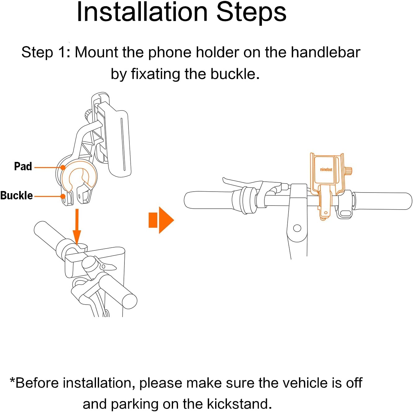 Segway Ninebot Phone Mount, Adjustable Electric Scooter eMoped Bicycle Handlebar Phone Holder, Fits Any 4-6.5 inches Cellphone, Compatible with MAX G3, MAX G2, F Series, E Series