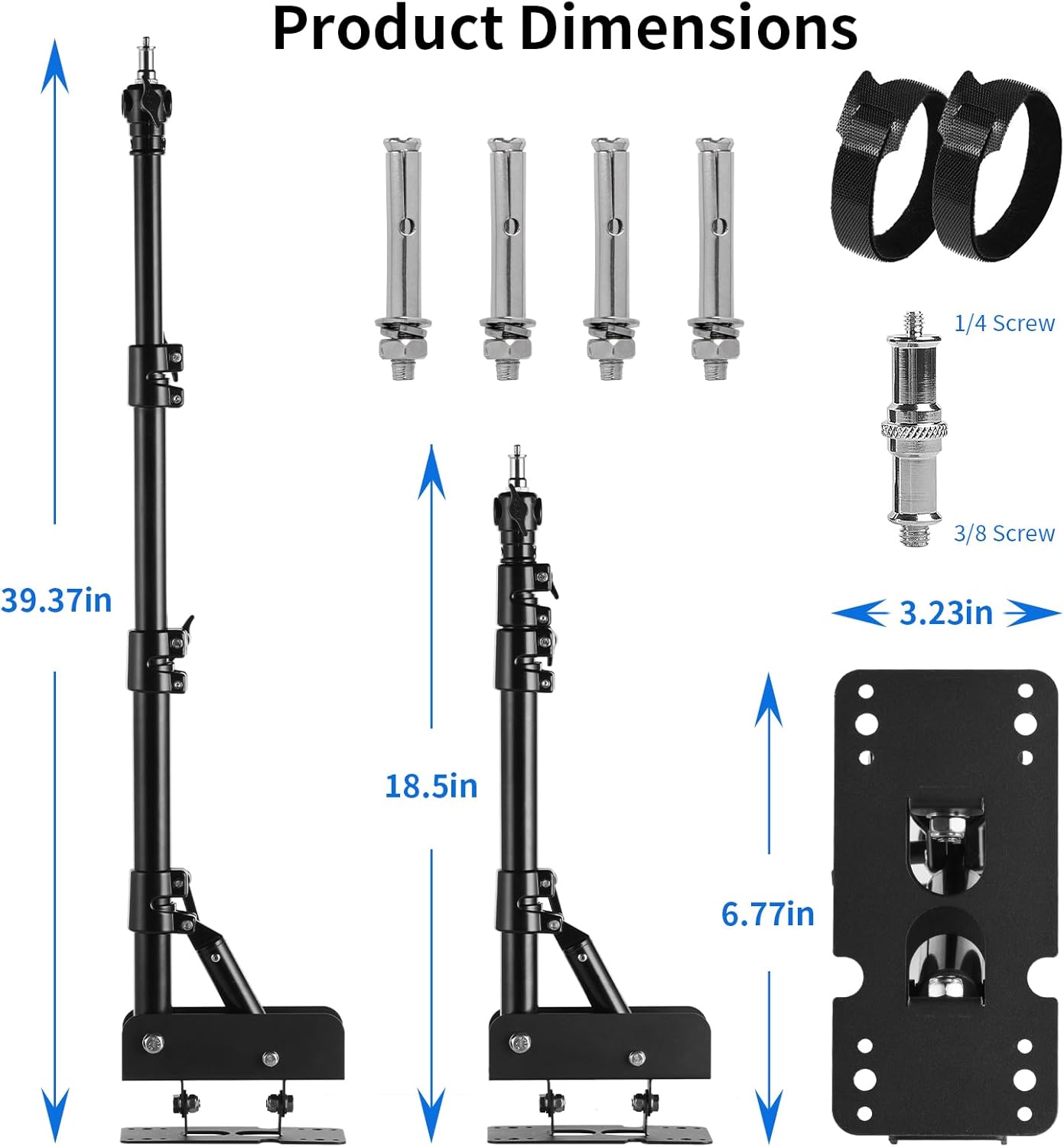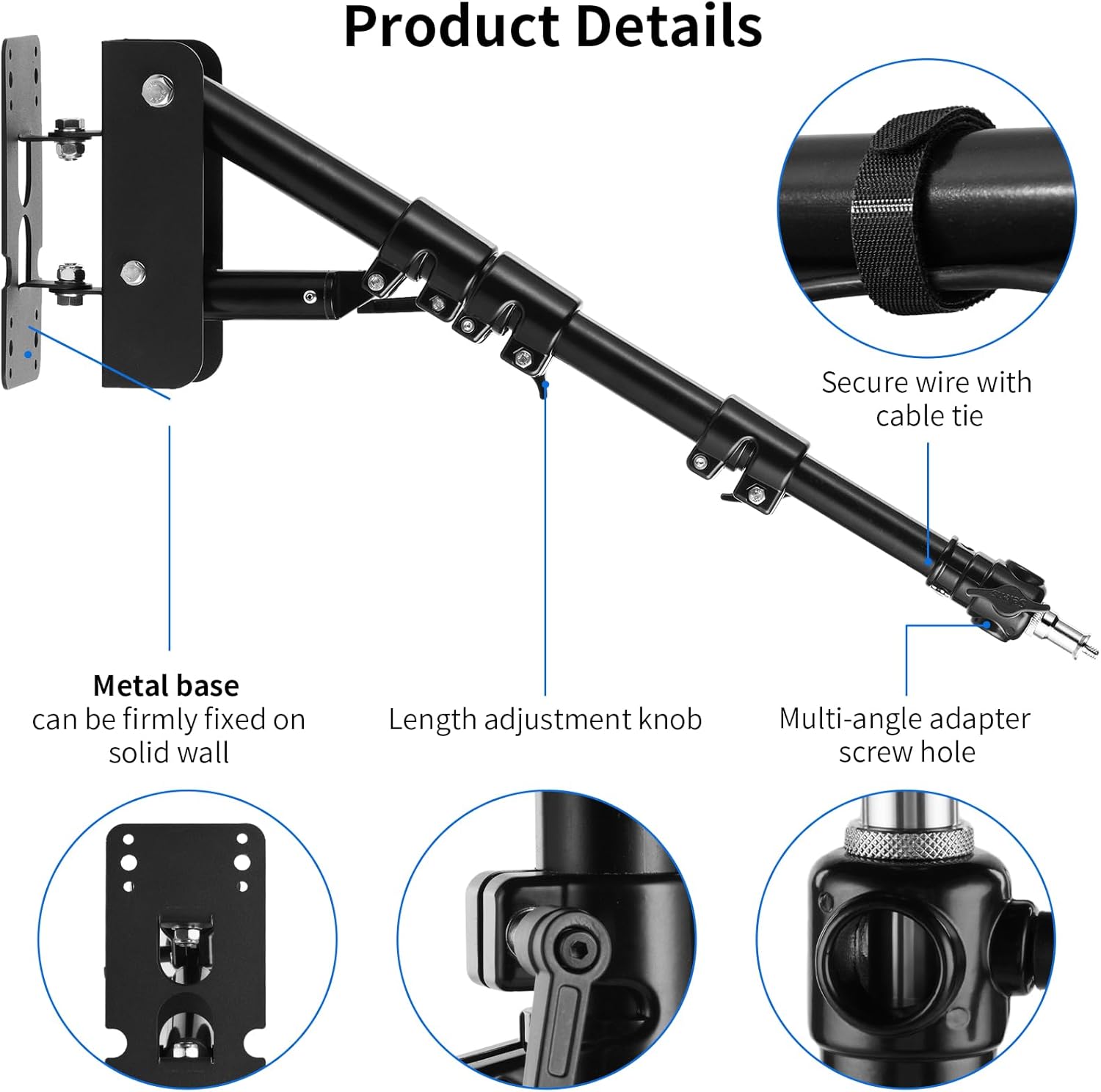 Installation is straightforward, as it can be mounted securely with either 4 expansion screws or 8 self-tapping screws. This boom arm is compatible with various equipment including ring lights, softboxes, and microphones, making it an ideal choice for photographers and videographers alike.