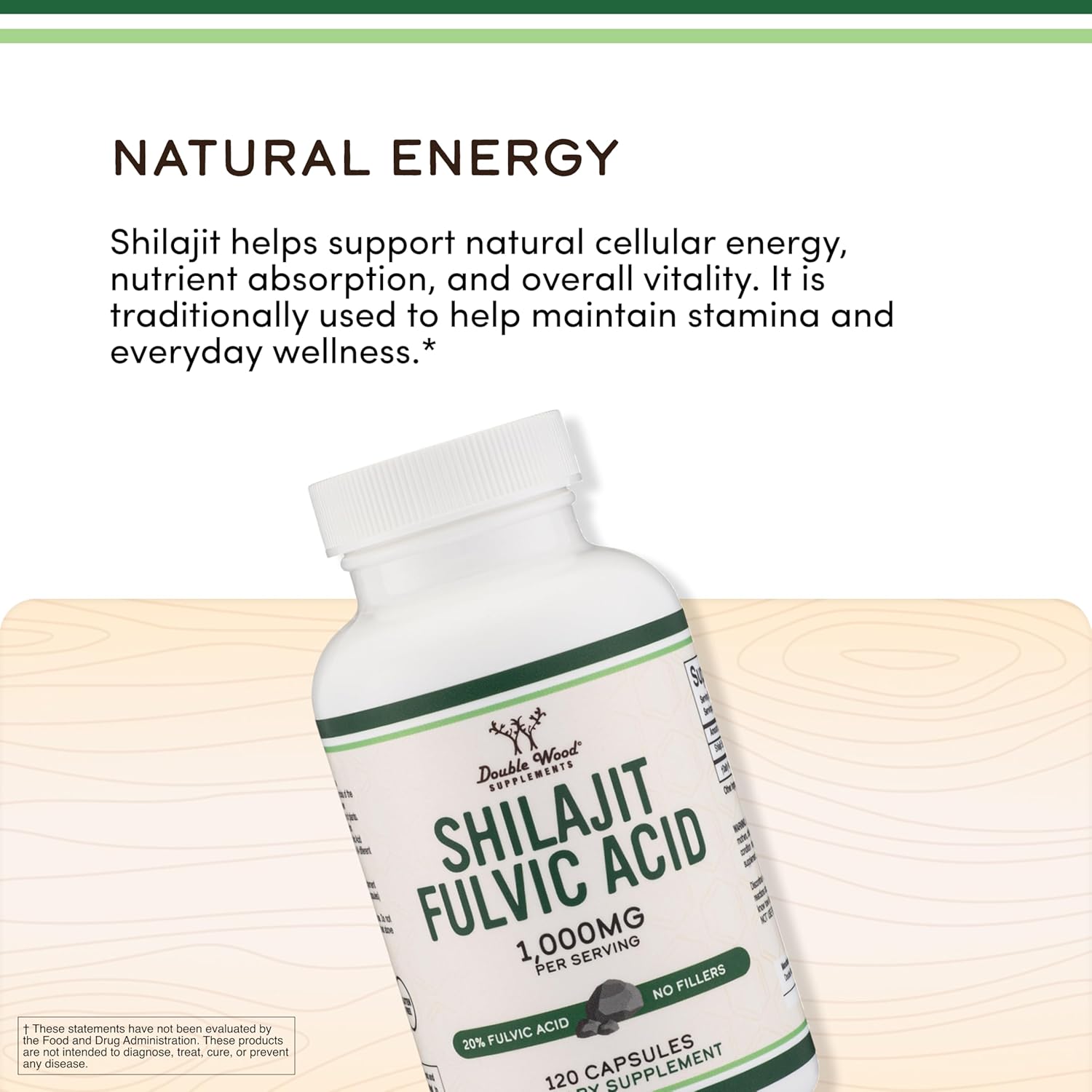 Shilajit Pure Himalayan Capsules (20% Fulvic Acid Supplement) 1,000mg of Authentic Shilajit Extract per Serving, 120 Count (High in Trace Minerals, No Fillers) by Double Wood