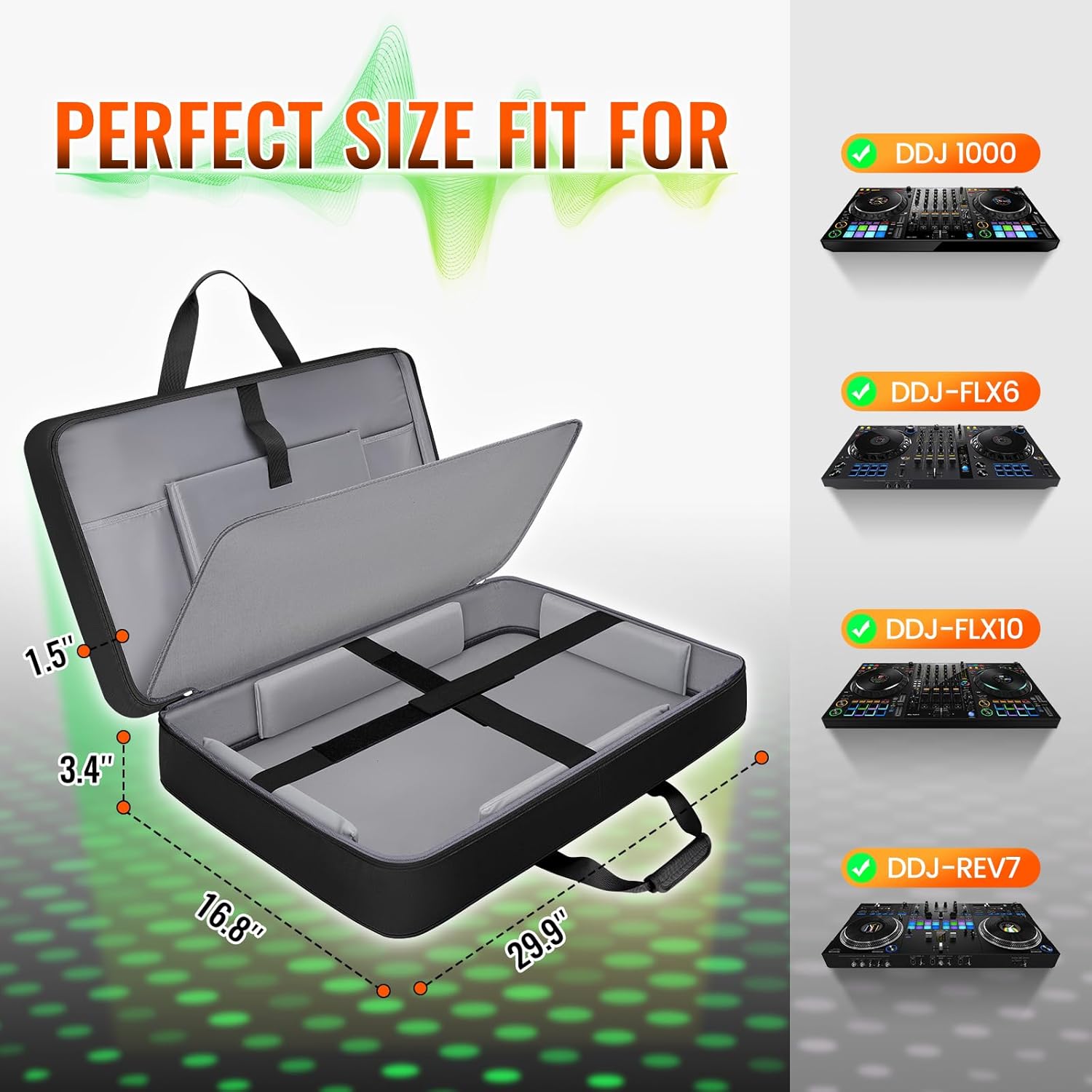 The SNIGJAT DJ Controller Case is compatible with DDJ-FLX10, DDJ-GRV6, REV5, REV7, FLX6, and 1000.