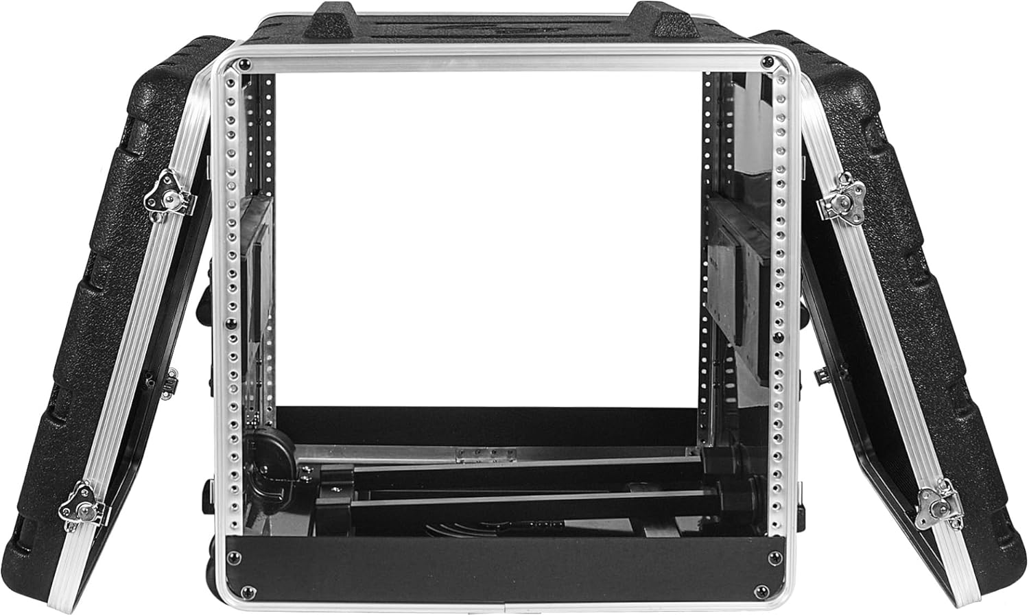 The Sound Town Lightweight 10U PA DJ Rack is designed for portability and durability. Made from ABS construction, it features a retractable handle and wheels for easy transport. With 9U rack space and a depth of 19 inches, it accommodates various DJ equipment securely. Heavy-duty latches ensure that your gear stays protected during travel.