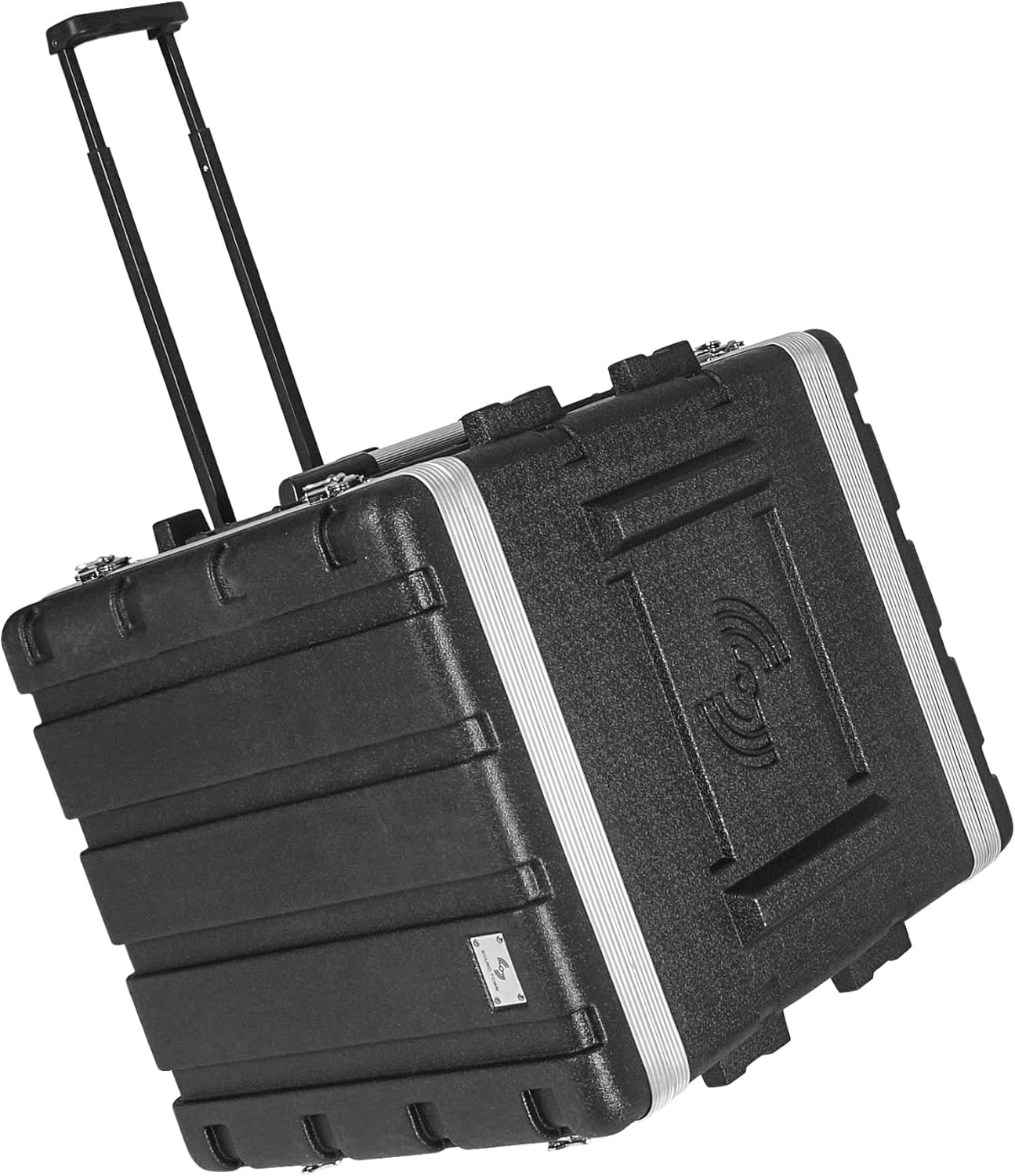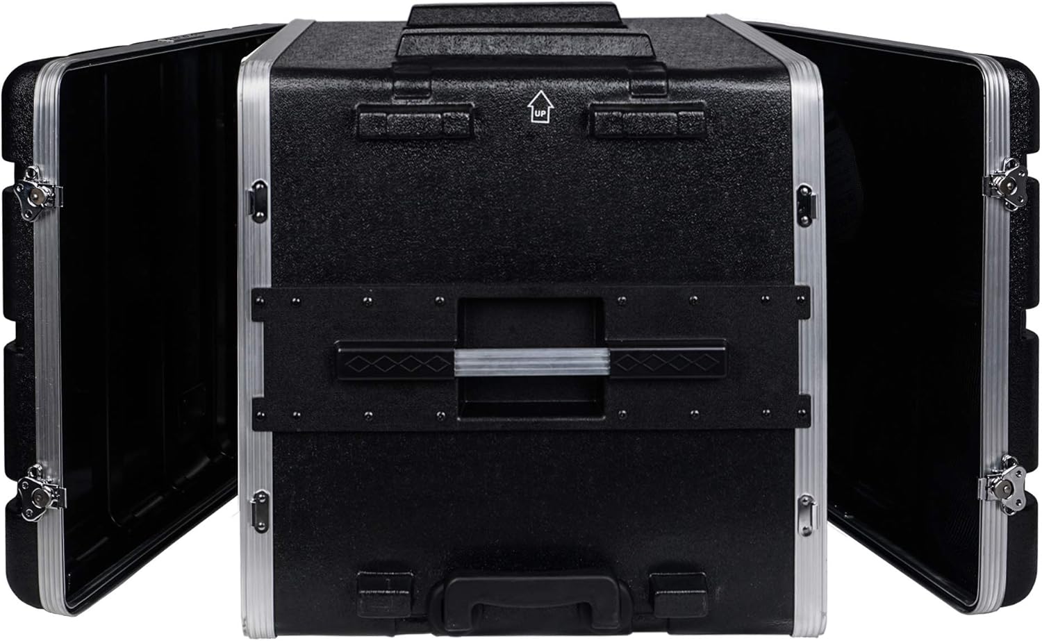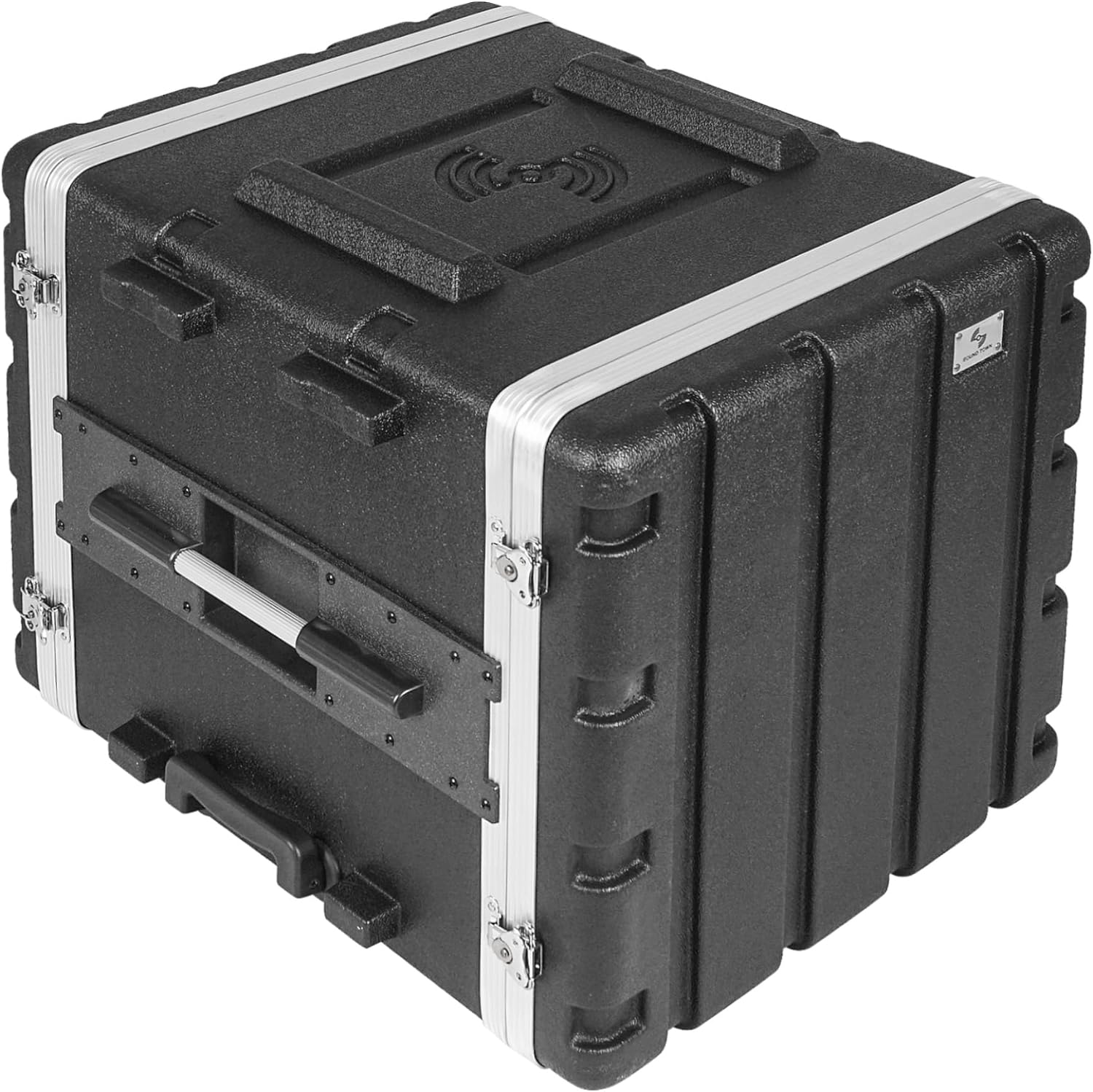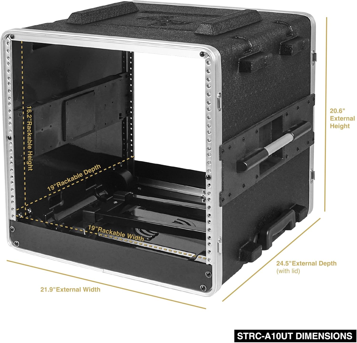 Sound Town Lightweight 10U PA DJ Rack/Road Case with 9U Rack Space, ABS Construction, 19” Depth, Retractable Handle, Wheels and Heavy-Duty Latches (STRC-A10UT)